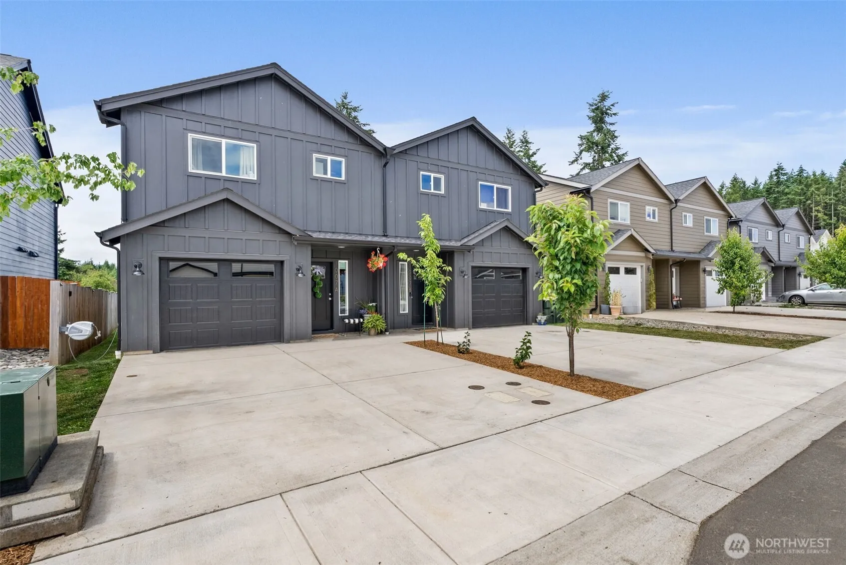 Built in 2023, this nearly new duplex in the growing community of Winlock offers a strong investment opportunity. Each 1,152 SF unit features 3 bedrooms, 2.5 bathrooms, and a one car garage. The kitchen features custom cabinets, quartz countertops, and stainless steel appliances. The primary bedroom includes a private ensuite bathroom. Both units have fully fenced back yards with concrete patios. Rented out at $1,800 per month and tenants paying their own utilities. All kitchen appliances included. Ideal for investors or owner-occupants—live in one unit and rent the other! Conveniently located in a new development just minutes from I-5, with easy access to both Portland and Seattle. Priced under assessed value!