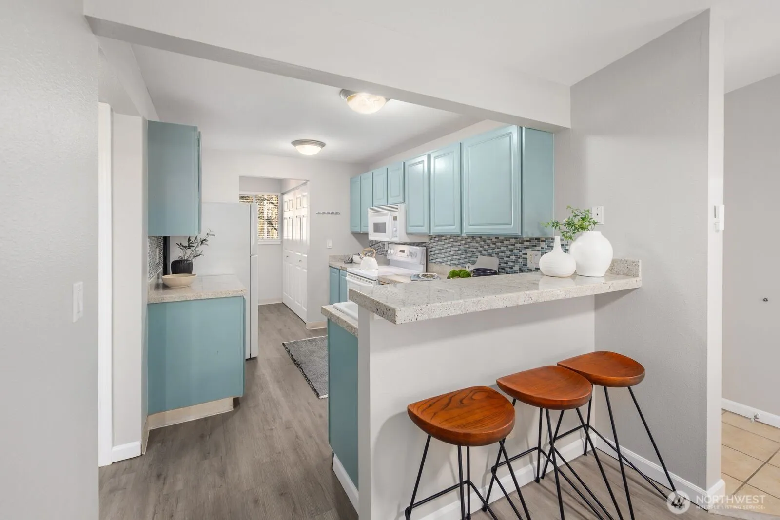 Location, convenience, & style come together in this must-see 2-bedroom, 1.75-bath condo. The refreshed interior features new paint & an open, functional layout that lives comfortably & efficiently. The kitchen offers generous counter space & ample storage, ideal for everyday living & entertaining. The spacious primary bedroom includes great closet space & its own private ¾ bathroom. Enjoy the added bonus of a private patio with extra storage, perfect for outdoor relaxation & convenience. This home offers exceptional flexibility with no rental cap, making it a great option for both owner-occupants & investors. Additional highlights include designated covered parking & low HOA dues that cover water, sewer, & garbage. The community features outstanding amenities, including a clubhouse, pool, hot tub, sauna, exercise room, & game room. Ideally located close to schools, shopping, restaurants, parks, & bus lines, with easy access to Juanita Beach, Juanita Village, Totem Lake, & I-405. All within the highly regarded Lake Washington School District. A must-see!