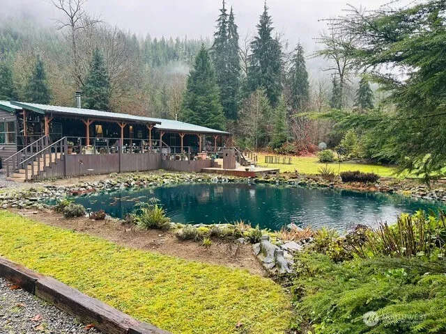 Well-maintained triple-wide home on a beautiful and private 5-acre lot with riverfront access to the Sauk River. This peaceful property offers an exceptional blend of natural beauty, outdoor living, and functional versatility. The home features a bright, open layout with abundant natural light and scenic views of the surrounding landscape. A fully covered deck provides year-round outdoor living space, ideal for relaxing or entertaining. The grounds are thoughtfully designed and include a large pond that enhances the tranquil, park-like setting. Enjoy multiple outdoor gathering areas, including a covered sitting area with a paved patio, perfect for hosting or unwinding outdoors. A unique oriental garden with a walking path creates a serene retreat within the property. River access adds to the lifestyle appeal with opportunities for fishing, kayaking, or simply enjoying the calming presence of the water. The property is well-equipped with a large shop featuring a bay door, a covered parking area, and multiple outbuildings, each with separate septic and well systems—offering excellent flexibility for storage, hobbies, guest use, or workspace. Two generators are connected to the property, providing reliable backup power and peace of mind. With room to roam, garden, or expand, this rare offering is ideal for those seeking privacy, usable land, and river access in a truly serene setting.
