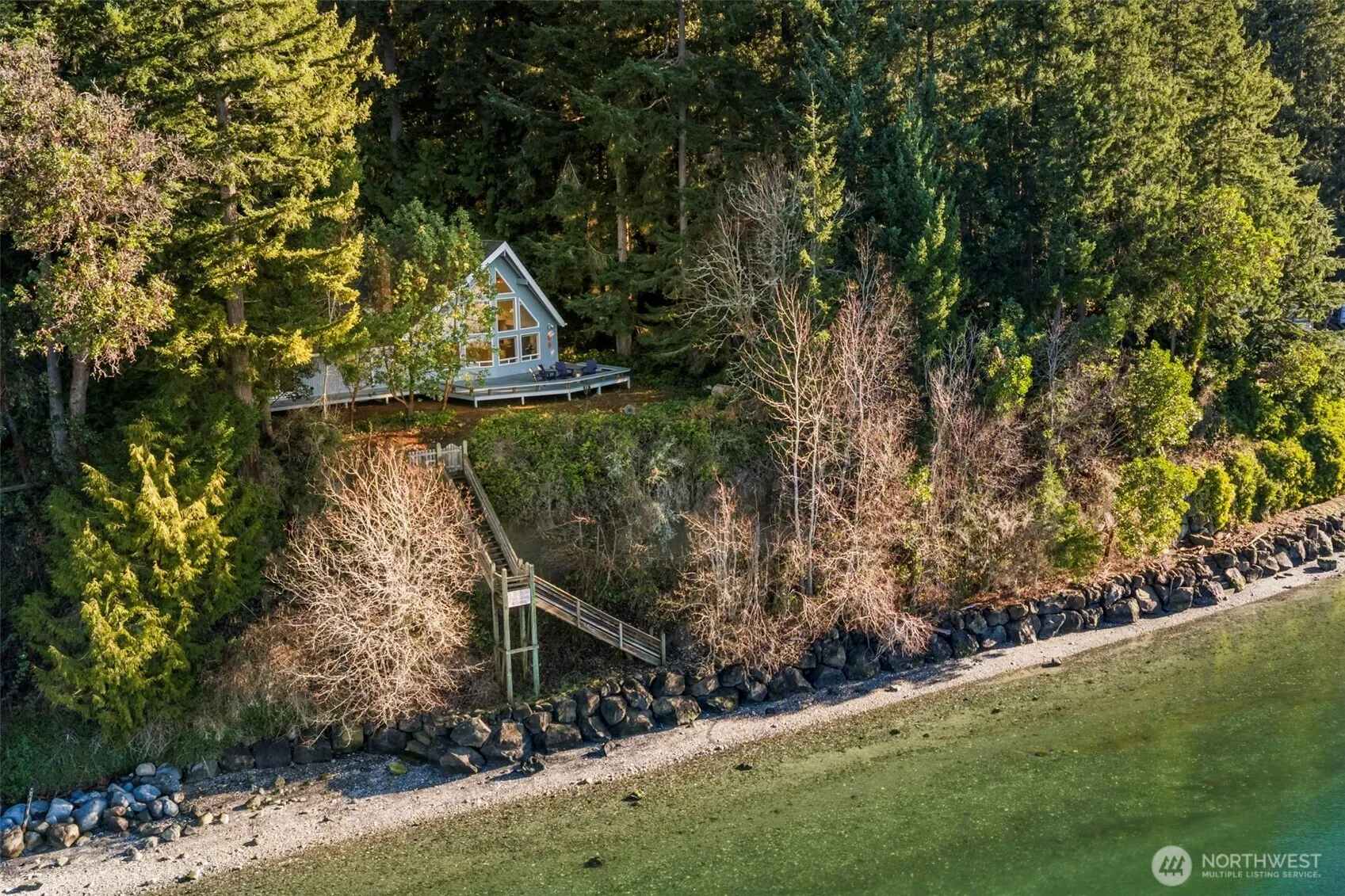 Orca season has started early! Mixed pod of 15 with two calves just went by. Heart pounding to experience from your own beach. This bright and airy, easy living home is perched on west facing medium bank waterfront with stair case to the beach. Full time residence or weekend getaway, a sunny, peaceful retreat away from the hustle and bustle of life. Charming functional layout with vast open living, new hardwood flooring & cozy wood burning fireplace. The massive wall of windows floods the space with natural light year around. Wake up to gorgeous views from your primary suite, with short walk out to view deck. Vaulted ceilings in all three bedrooms and most rooms in the house. One level living plus nice open loft area w/ storage, Perfect for yoga~pilates, home office or media space. Heat pump with A/C for warmer days. Enjoy all day summer sunshine, incredible sunsets & ever-changing Agate Pass views of boat cruisers and marine life from the spacious Trex deck. Beautiful private wooded lot with solid stairs to fully bulkheaded 100′ beach w/ deeded tidelands. Treasured by the same family for decades, ready for your next chapter of memories to be made!