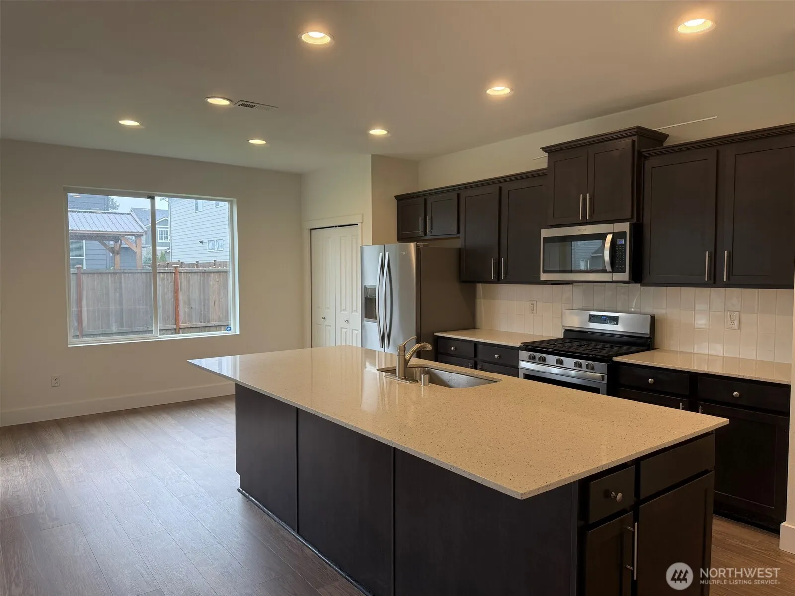 Beautifully updated and meticulously maintained, this 2,597 SF home offers 5 bedrooms (or 4 plus a den/office) and a bright, open-concept layout designed for comfortable living. The kitchen, dining, and living areas flow seamlessly together, anchored by a cozy gas fireplace and enhanced by abundant natural light. Enjoy a fresh, like-new feel with extensive updates completed in March, including brand new laminate flooring on the main level, plush new carpet, and a full interior repaint. The kitchen has also been tastefully refreshed with a stylish new backsplash, adding a modern touch to the heart of the home. Upstairs, the spacious primary suite provides a relaxing retreat with a large soaking tub, walk-in closet, and plenty of room to unwind. A versatile bonus room offers ideal space for a playroom, media room, or home office. Step outside to a fully fenced backyard, perfect for entertaining, pets, or enjoying the outdoors. Located in a welcoming neighborhood with nearby parks and a strong sense of community, this move-in ready home truly has it all!