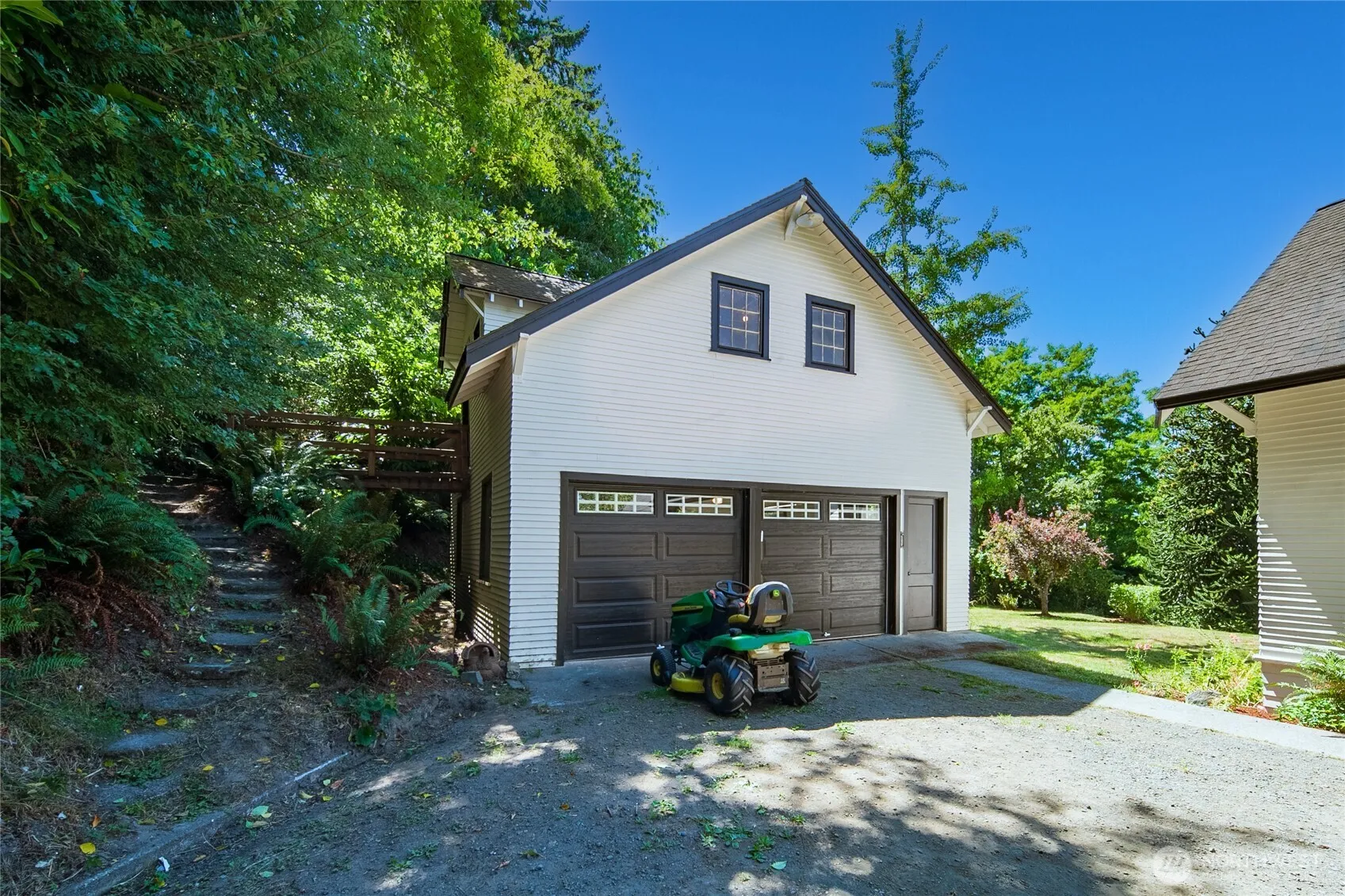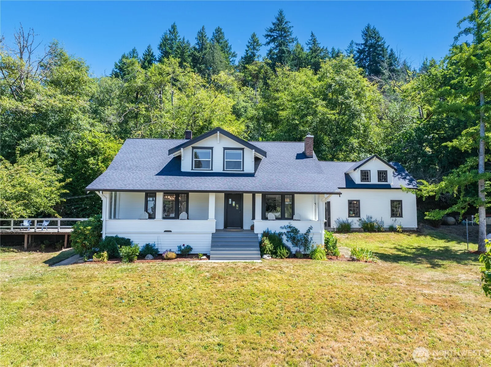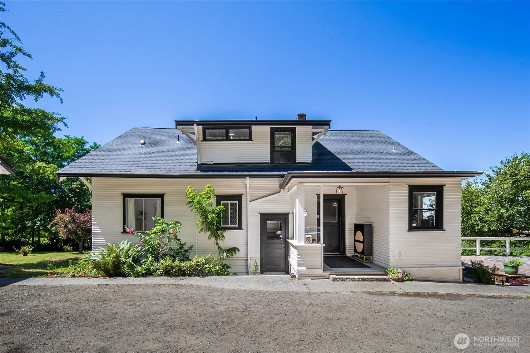 Classic 1920s Westside Craftsman farmhouse with panoramic views of Colvos Passage and stunning Olympic Mountain sunsets. Enjoy vistas and sunsets from every floor, the expansive sitting porch, large BBQ deck, or the hot tub. Original millwork and built-ins throughout blend timeless charm with modern updates. Set on 9+ acres with mature orchard with producing blueberry bushes, apple, pear, and cherry trees, plus heritage grape vines as well as walking trails into the hills. Detached 2-car garage with a 580+ sq ft unfinished studio upstairs—full of renovation potential. Major 2021–24 upgrades: new roofs, septic, kitchen, both bathrooms, appliances, paint, electrical, plumbing, and more. Wired-in generator and water filtration system included!