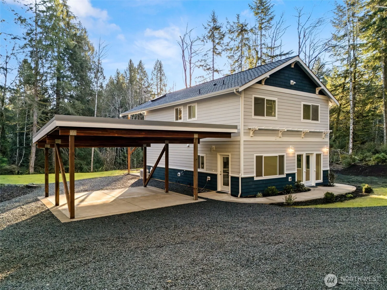 Welcome to this brand new, charming, custom, country cottage. A high quality, true hidden gem, set on over 2.5 acres in a private and serene, forest setting. Tucked behind a gated entry, it feels a million miles away, but is only minutes from the convenience of in town amenities and is perfectly located for an easy commute to highway 16 or the ferries. Thoughtfully designed, both the primary suite and great room easily transitions to year-round outdoor living on the expansive covered decks. Inside you will enjoy 3 bedrooms, 2.5 baths and 1872 sq. feet of abundant, natural light, beautiful finishes and a modern, well-equipped kitchen with ample counter space and stainless-steel appliances. Built with exceptional energy efficiency and a fire suppression system it offers piece of mind and cost savings. Parking is effortless with a large, covered carport, perfect for the Washington weather and a long driveway with plenty of space for guests or recreational vehicles. If you have been searching for space, privacy and endless potential without sacrificing convenience, welcome home to this truly exceptional and extremely rare hidden gem.