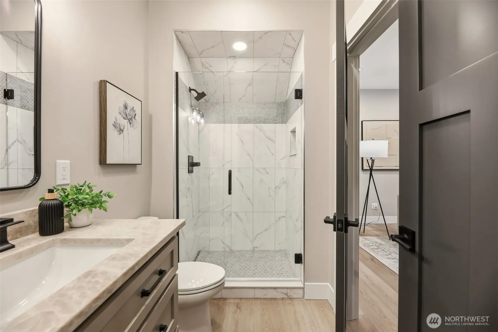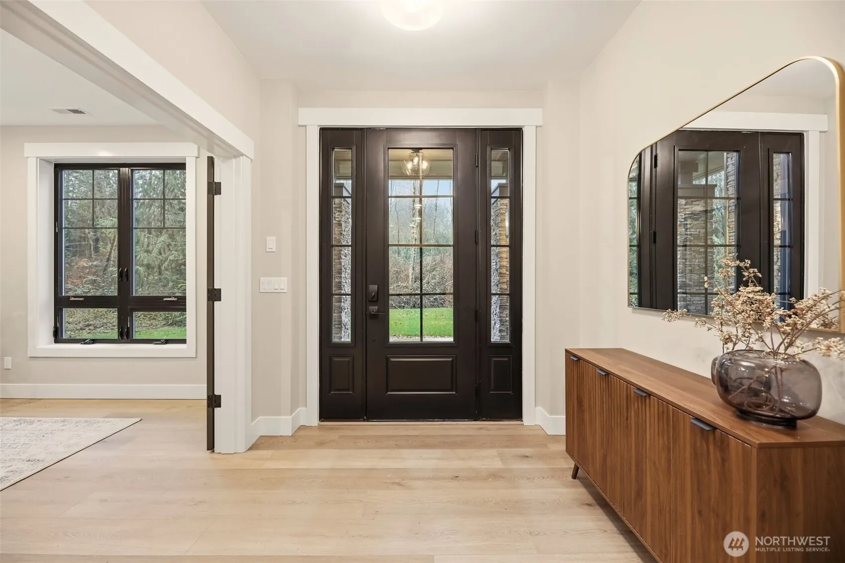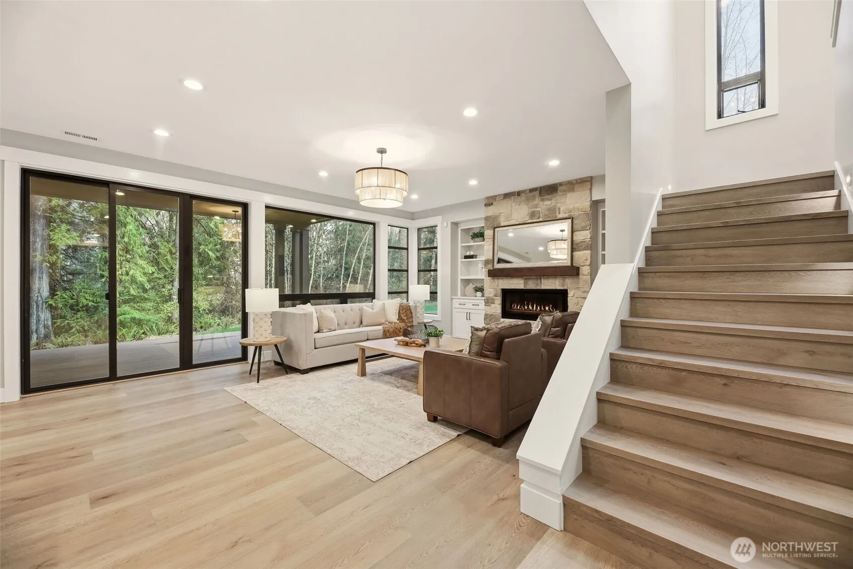 Welcome to this beautiful new construction home with fully finished 3-car garage and epoxy flooring, whole house generator, Tesla universal charger, and RV/boat parking on a peaceful lot with acreage. Enjoy a welcoming mudroom with built-ins, and a bright dining room with wet bar and amazing forest views. In the family room, a natural gas fireplace is surrounded by beautiful stone work. The gourmet kitchen offers a walk-in pantry, quartz counters, and high-end finishes. The private office or bedroom on the main floor has French doors, storage space, and adjoining bath. Upstairs the spacious primary suite includes a spa-style bath with heated floors, freestanding tub, and a large walk in closet with custom closet cabinetry. Also upstairs is a bonus room perfect for a gym, studio, or playroom. The laundry room is filled with cabinets and a convenient utility sink. Gorgeous LVP flooring throughout! Property backs to public land for privacy and outdoor enjoyment. Approx. 10 minutes to Lake Stevens boat launch and about 30 to Boeing.