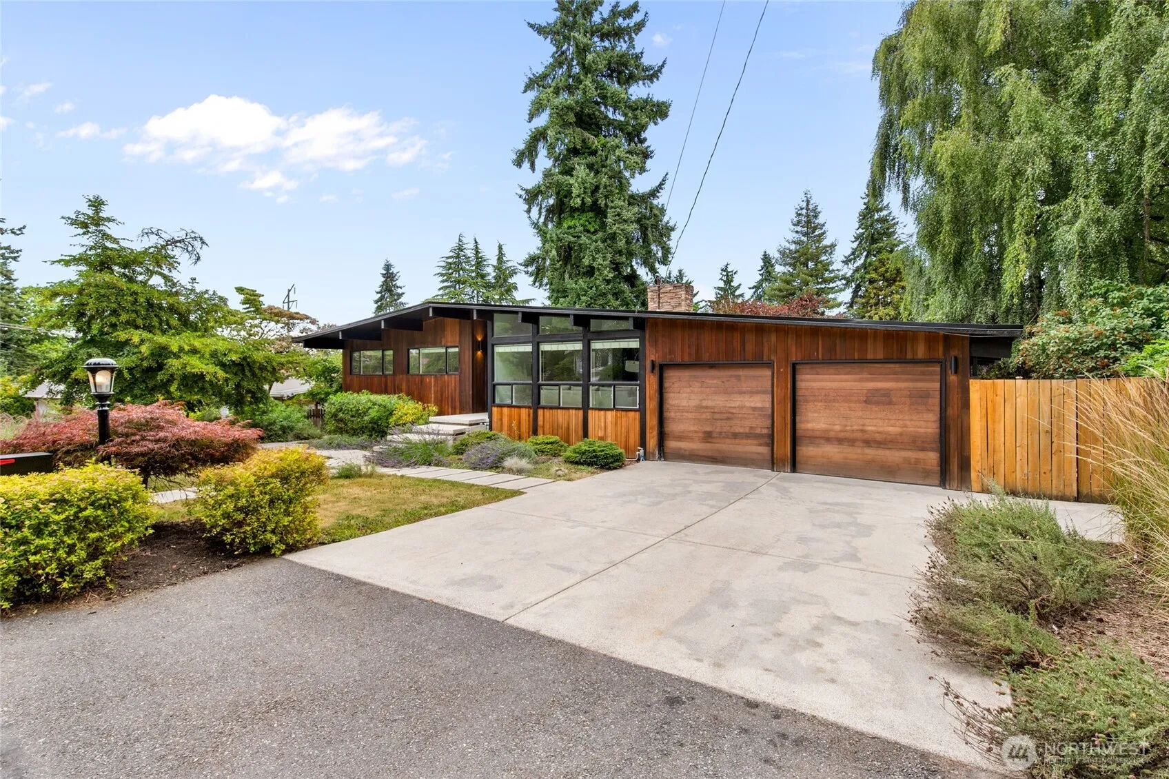 Stunning North End Mercer Island home—ideal for multi-generational living! Vaulted living room with floor-to-ceiling windows, box-beamed ceiling, and two-sided stone fireplace shared with the recently updated chef’s kitchen featuring stainless appliances and slab granite. French doors open to a lush, private backyard oasis. Spacious main-floor primary suite with sitting area, walk-in closet, and luxurious bath with, upgraded fixtures. Expansive lower-level bonus room with second kitchen, bar, and fireplace—perfect for guests or extended stays. EV charger for your electric vehicle! One minute to Mercer Island HS, two blocks to Northwood Elementary School.