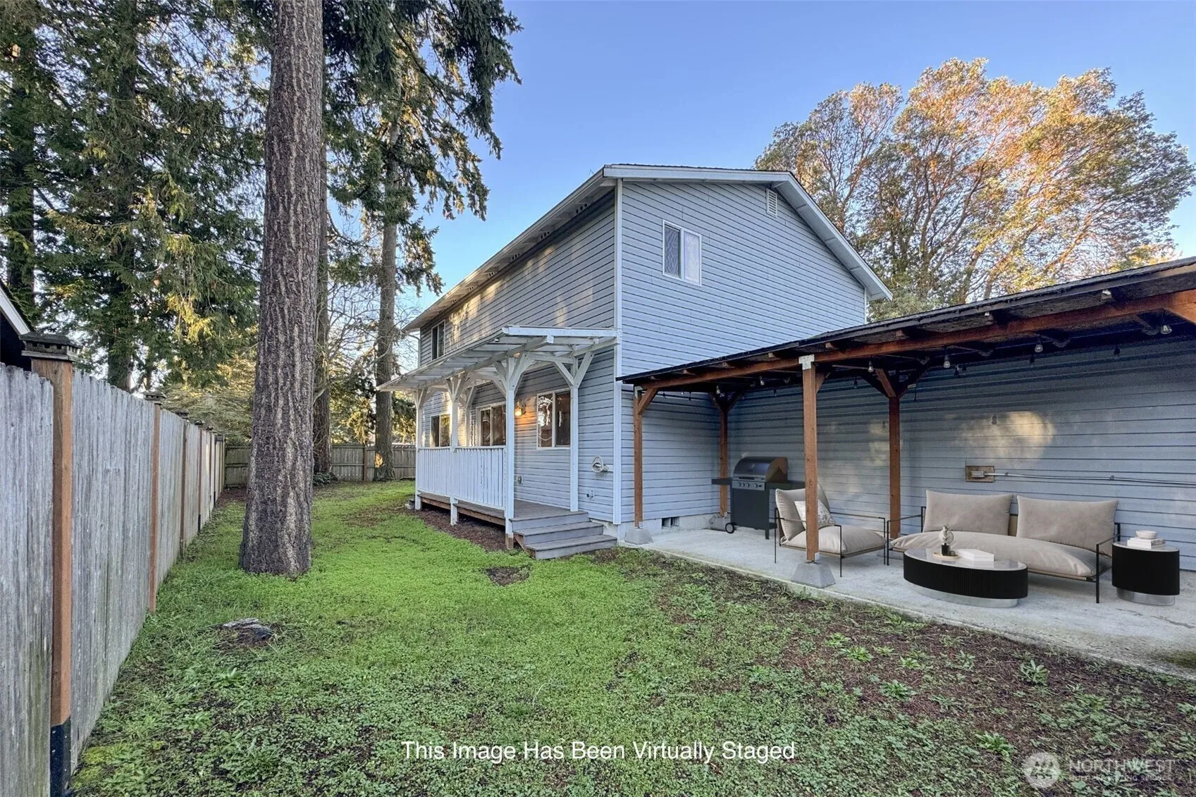 Fresh interior paint and a welcoming layout set the stage for easy everyday living. The main floor brings people together with a comfortable living room, dining area, and a flexible family room/game room/office that adapts to work, play, or quiet downtime. The kitchen is equipped with a GE microwave, Maytag stove, and Bosch dishwasher, with a pantry tucked neatly under the stairs. A half bath and laundry room round out the main level. Upstairs, two guest bedrooms and a full guest bath sit opposite a private primary suite featuring two closets, a ceiling fan, and a tub/shower combo. Outdoor living shines here. Enjoy morning coffee on the covered front porch, host dinners on the covered back deck, or unwind on the covered patio with a hot-tub-ready slab. The fully fenced, southern-exposure backyard is ideal for gardening, pets, or play, and the corner-lot setting adds extra breathing room. A large garden shed keeps tools organized. The insulated two-car attached garage includes a door opener, a garage door installed approximately two years ago, and a workbench for projects or storage. Extra parking easily fits a boat, trailer, or RV, complete with power and sewer hookup. Vinyl siding and an extra-tall crawlspace add practical ease. Additional laminate flooring and transitions are included, offering buyers the option to update the upstairs to their taste. Convenient location close to town amenities completes the picture.