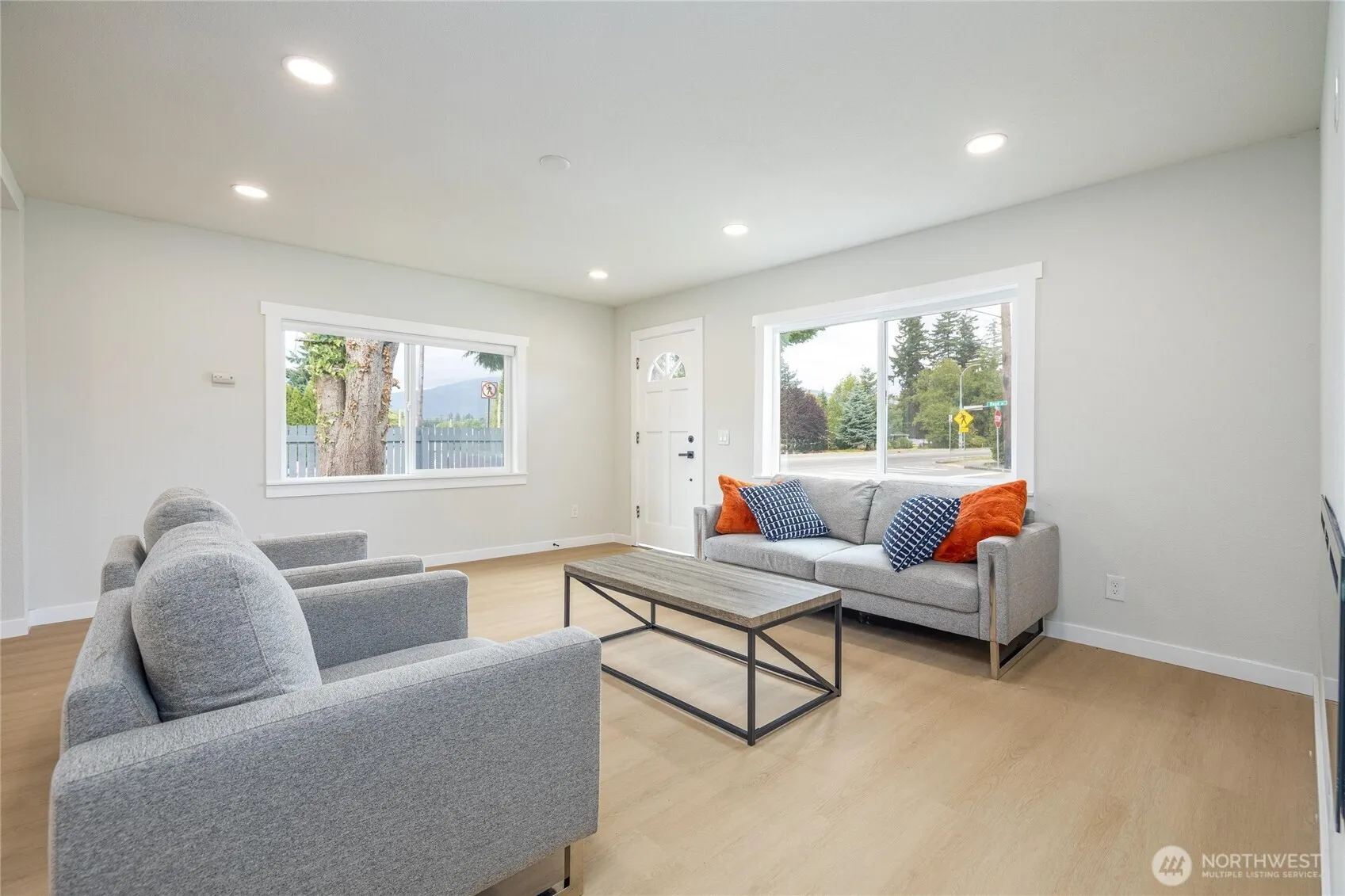 Solitude and Serenity! Welcome to this perfectly situated Sedro Woolley home. This stunning home has checked all of the boxes. You are greeted by a spacious entry that flows into the open concept kitchen that features custom cabinets wrapped in beautiful quartz and complemented with S/S appliances. Perfect for entertaining! The living room is light and airy all throughout the home. Included you will find two bedrooms, including the spacious master. Perfect for those seeking a blend of comfort, style, and convenience. Your new lifestyle in Sedro Woolley awaits! Enjoy the oversized backyard . Additionally this home offers incredible investment potential, as its zoning is classified as mixed commercial which opens up many future possibilities.