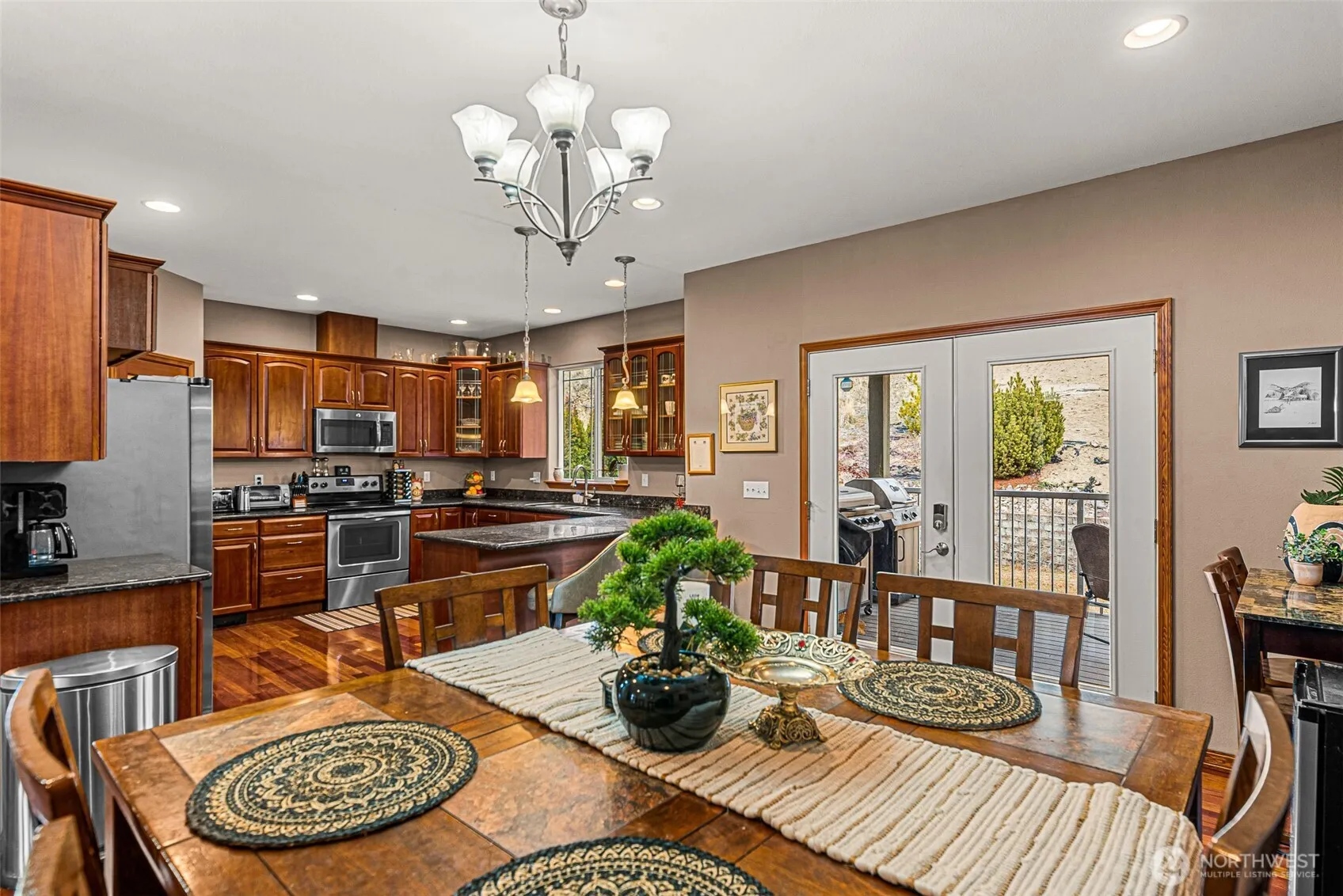Must see! This impressive six-bedroom, 3.5-bath view home in East Wenatchee offers space, flexibility, and standout features throughout. The large kitchen shines with real hardwood floors, modern appliances, and generous counter space. Two spacious suites with en-suite baths and walk-in closets add comfort and versatility. The thoughtful layout includes laundry on both levels and a lower-level utility room with hookups, sink, and freezer space. A sixth bedroom was added—remove the wall if you prefer an expanded rec room. Enjoy sweeping views from multiple rooms and outdoor areas. A three-car garage provides extra storage or workshop potential. This well-designed home is ready for its next chapter.