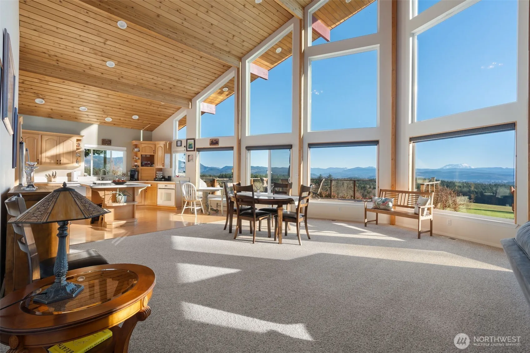 Wake up to breathtaking panoramic mountain views in this 3-bedroom, 2.5-bath home filled with natural light. Tongue-and-groove vaulted ceilings and cathedral windows create an open feel, while the living room offers a cozy wood fireplace insert. Enjoy the views from the expansive deck, ideal for relaxing or entertaining. The home and outbuildings have been recently reroofed and upgraded with LED lighting. A heat pump A/C system provides efficient comfort. The primary suite features a heated soaking tub and separate shower. Property includes an attached 2-car garage, a fully insulated 48×48 shop, and a separate insulated detached shop/garage with loft, workspace, wood stove, 220 power, and full bath. The home is wired for a generator and includes fruit trees and garden space. A must-see property with stunning views, function, and flexibility.