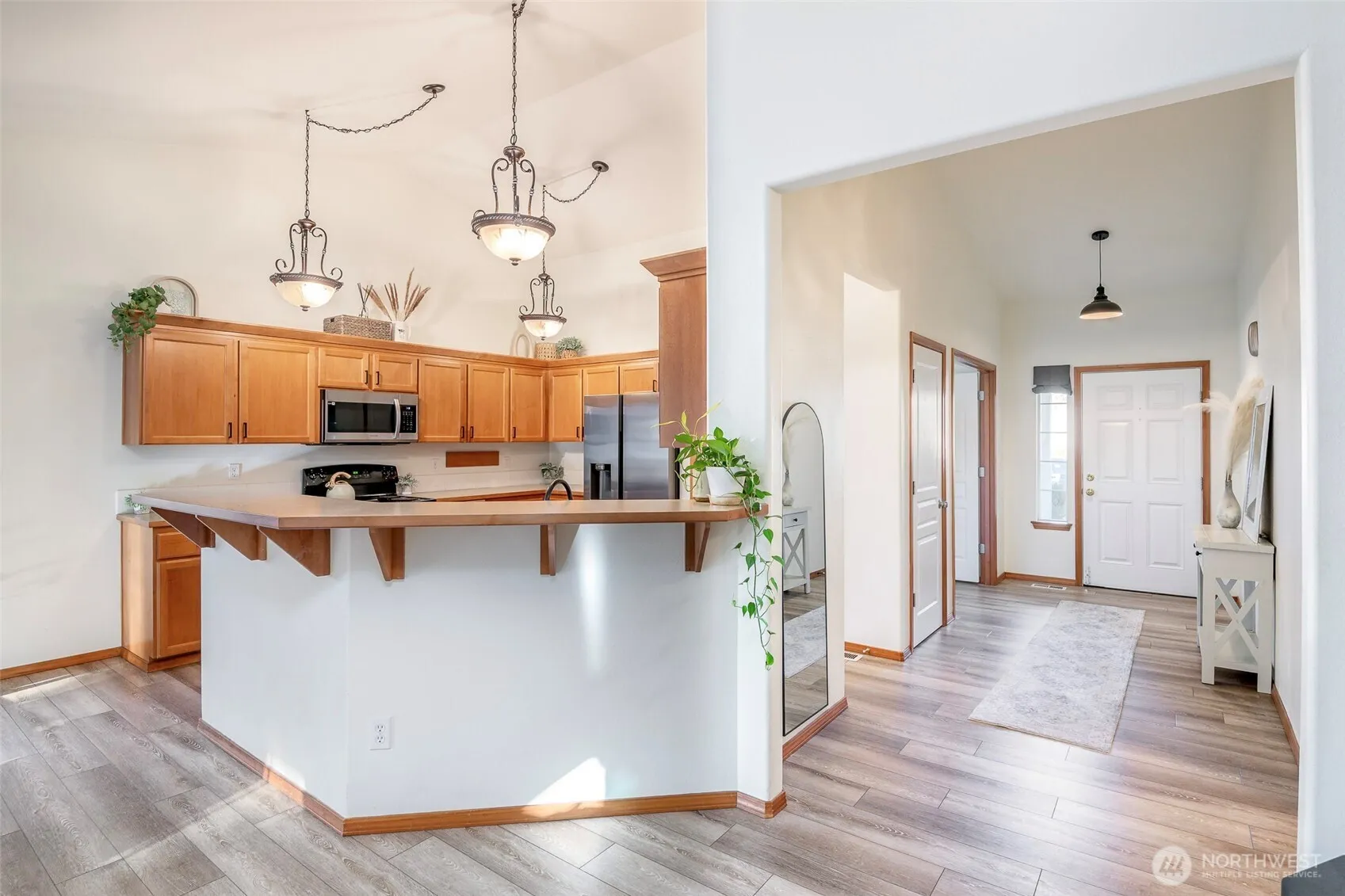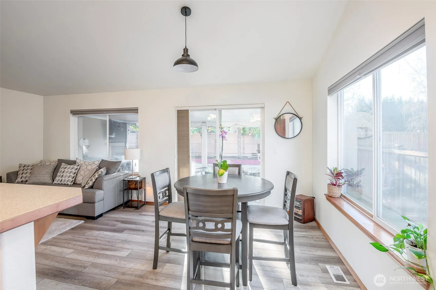 Here’s your chance to own this beautiful one-story home in the desirable River’s Edge community. Enjoy an open-concept kitchen and living room filled with natural light access to the back deck- perfect for indoor-outdoor living. The fully fenced backyard features mature palm trees, low-maintenance hardscaping, and turf for easy upkeep. The primary suite offers a connected bath with double vanity and a walk-in closet, plus two additional generously sized bedrooms. New LVP flooring throughout and a two-car garage with ample storage add to the appeal. Sidewalks, parks, and trails surround the neighborhood, with close proximity to shopping, fishing, golfing, schools, and restaurants.