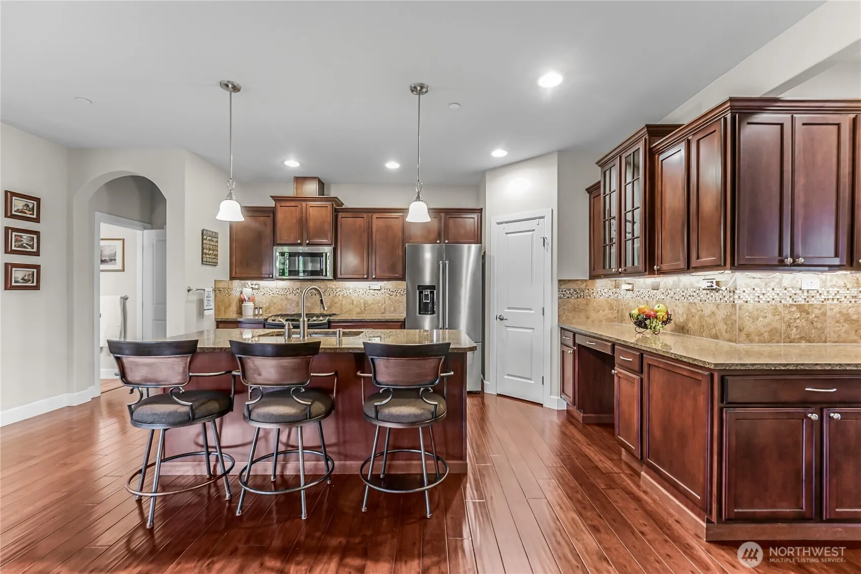 Discover a lifestyle where comfort, nature, and community come together in Bohemian Estates. This gated enclave of custom homes offers peaceful Northwest living- enjoy kayak launches from the private lake access, impromptu games at the resident only sport court, or enjoy your favorite beverage on your covered deck where you may spot deer, herons, geese, ducks or even an occasional eagle. Inside, nearly 3,000 sq ft welcome you with spaces designed for easy living and effortless hosting. The chef’s kitchen is complete with granite counters, ample storage, walk-in pantry and center island/breakfast bar. The open design Great Room is perfect for everyday living and entertaining. The theater room can accommodate up to 10 reclining chairs or it can easily be converted back to a huge bonus room. Air conditioning and thoughtful upgrades throughout add everyday comfort. Wake each morning in the oversized primary suite with spa-inspired bath and custom closet. Guests will enjoy the main floor bedroom with a built-in queen Murphy bed and adjacent bath. Large windows frame calming views of the protected wetlands and a filtered view of Lake Tapps. Tucked on a quiet cul de sac in the highly rated Sumner-Bonney Lake School District. Located moments from Lake Tapps waterfront parks and less than an hour from skiing, hiking and camping. Here, every day feels like a getaway, yet everything you need is close by. Welcome home!