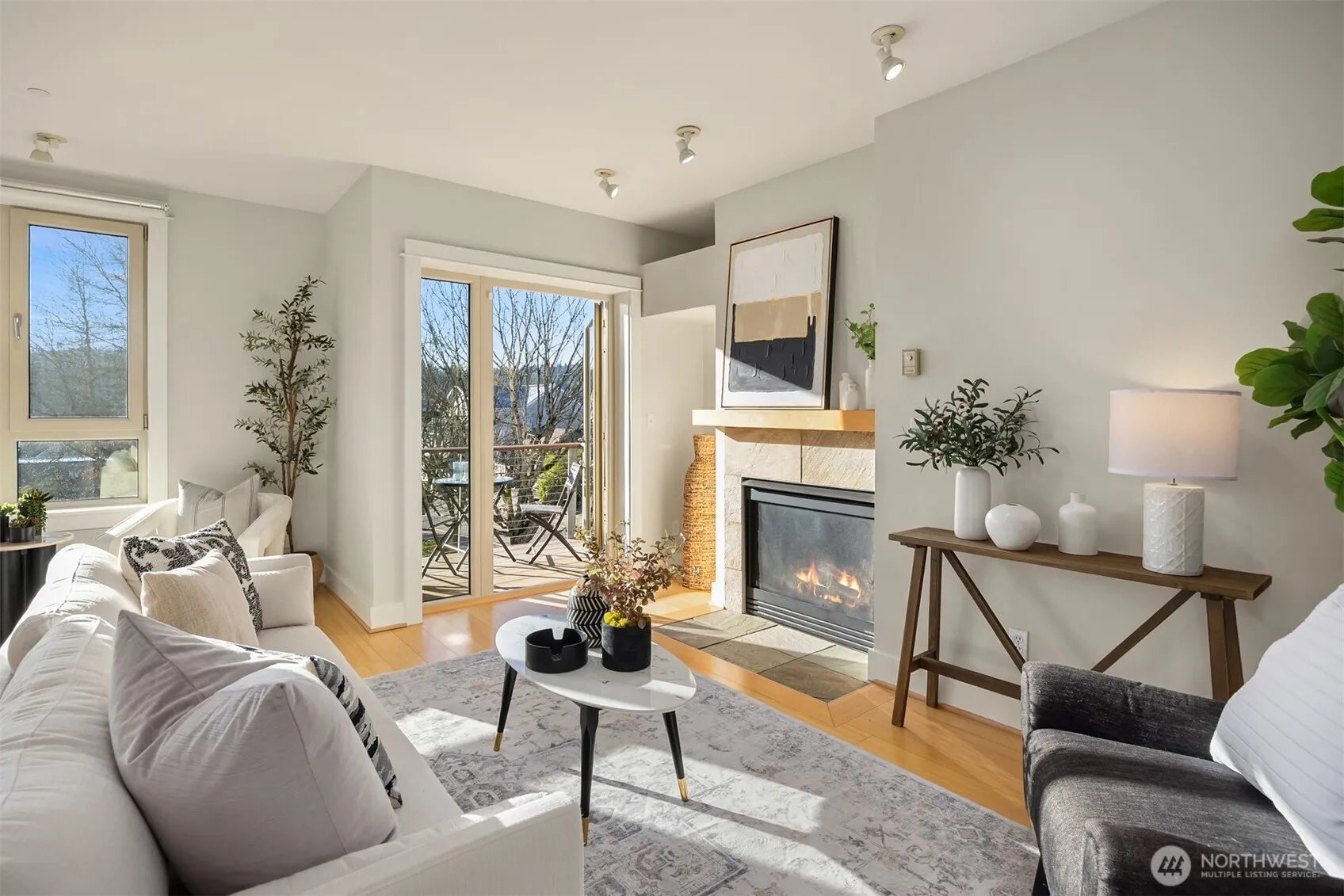 Start 2026 in style with this charming, south-facing 2-bedroom, 2-bath condo in the heart of Winslow. Natural light floods the open living space, brightening even the dreariest days. Enjoy private parking, lower-level storage, and elevator access directly to the second floor, just steps from your front door. The unit has been freshly repainted throughout and features a cozy propane fireplace, a dedicated office or flex space, and a lovely balcony overlooking Eagle Harbor. Perfect for entertaining, this home also offers a heat pump for warm-weather comfort, blending convenience, livability, and an unbeatable in-town location. Just moments from shops, dining, and an easy commute to Seattle, this is a truly sweet island retreat with harbor views and abundant sunshine – the joys of island living.