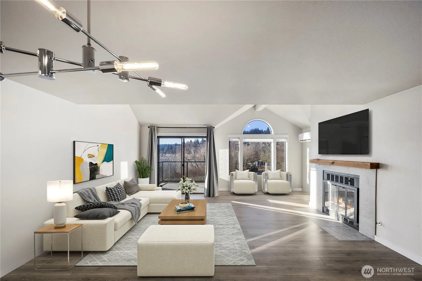 Positioned on the top floor of the prestigious Harbour Village community, this sophisticated condominium presents breathtaking Lake Washington views and magical Sunsets. Designed with vaulted ceilings and a seamless open floor plan, the residence is bathed in natural light and features two generously proportioned bedrooms and tastefully appointed bathrooms. The impeccably curated kitchen showcases sleek acrylic cabinetry, quartz countertops, a bespoke tile backsplash and stainless steel appliances. Throughout the home, refined finishes and designer flooring contribute to an ambiance of elegance and modernity. Two private balconies provide serene vantage points to appreciate the tranquil surroundings, while dual fireplaces offer warmth and comfort. The sleek mini-split system ensures optimal climate control year round. Conveniently located near Log Boom Park, the Burke-Gilman Trail, and Harbour Marina, this property exemplifies a harmonious blend of luxury, style, and practicality. Congratulations, you’ve just found YOUR new home.