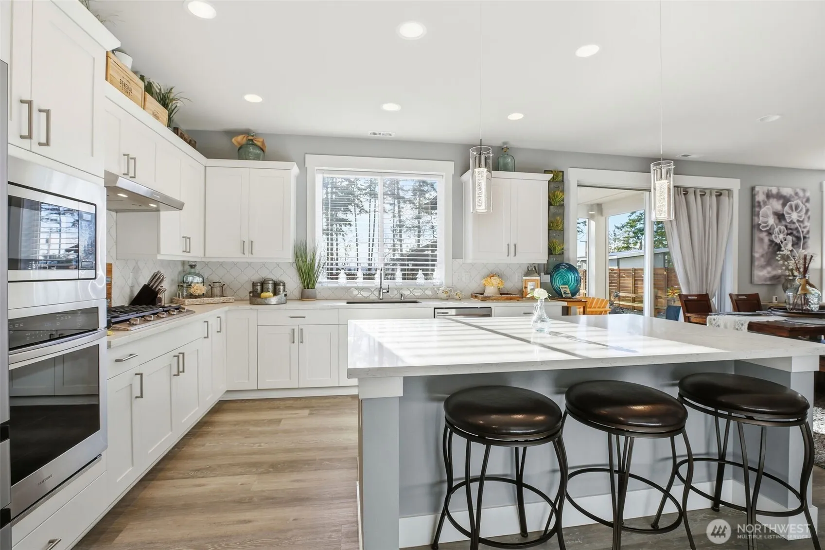 Better than new! Built in 2022, this 2,557 sq. ft. Three-car garage with ample storage single family residence offers exceptional quality as a nearly new home in the Penn Cove Park community. The thoughtfully designed two-story layout features contemporary finishes throughout, including white cabinetry, quartz countertops, stainless steel kitchen appliances, and an efficient heat pump providing air conditioning. The home offers 4 bedrooms and 2.75 bathrooms, including a desirable main-floor bedroom with a beautifully appointed bath and walk in shower, ideal for guests or multi-generational living. Don’t miss the spacious bonus room that adds flexibility. The interior family room is warmed by a gas fireplace, and a second gas fireplace enhances the covered outdoor patio perfect for year-round enjoyment. Designed for modern living, the expansive primary suite features views of Penn Cove and a private five-fixture en-suite bath. The home’s generous size and functional floor plan comfortably accommodate a large household. Located in Oak Harbor, the property* is a short walk to public beach access at Penn Cove and is conveniently close to Hillcrest Elementary School, Oak Harbor Intermediate School, North Whidbey Middle School, and Oak Harbor High School combining comfort, quality, and an ideal coastal location.
