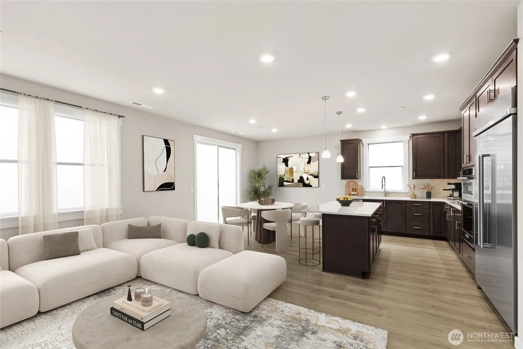 Red Tag Event!!!!! Discover Rosewood Court, an exciting new community of 51 beautifully crafted single-family homes in the heart of North Rose Hill, ideally located between Kirkland and Redmond. The sought-after Daisy floor plan offers 4 bedrooms, 2.5 baths, and a 2-car garage, designed for both everyday living and effortless entertaining. Step inside to the main level featuring a light-filled great room, elegant dining area, and a well-appointed kitchen with a large statement island, quartz countertops, gas cooktop, built-in oven and microwave, and a 48” built-in counter-depth refrigerator, perfect for hosting and gathering. Upstairs, retreat to a serene primary suite with a 5-piece bath and spacious walk-in closet, complemented by three additional bedrooms, a full bath, and a convenient laundry room. Enjoy modern comfort with central A/C, energy-efficient heat pump, smart home technology, and electric vehicle charger ready. This home backs to an environmentally protected area, offering exceptional privacy and direct access to nearby trails, a rare and peaceful setting for those who value privacy. Buyer’s broker must be registered at first visit, including open houses.