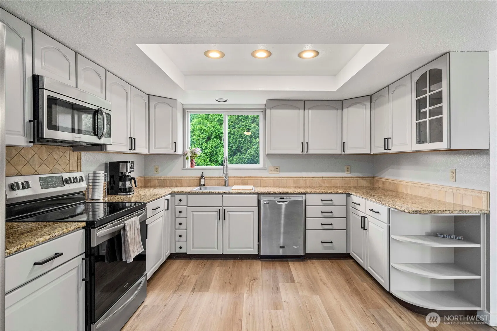 Luxury lakeside living on highly coveted Tapps Island! This beautifully updated 4-bedroom + bonus room, 2.5-bath home offers 80 feet of waterfront w/ breathtaking Mt. Rainier views from the dock. Perfect for multigenerational living w/ a lower-level MIL suite featuring its own entrance, laundry & private living space. Enjoy new carpet in the main living area, new LVP throughout most of the home, laundry on the main & AC for year-round comfort. Soak in sensational sunsets from expansive decks or take advantage of your private dock w/ boat & jet ski lift. Located in a gated community offering golf, clubhouse, pool, boat launch, beach access & more. Bright, spacious, and full of charm—this is the waterfront dream you’ve been waiting for!