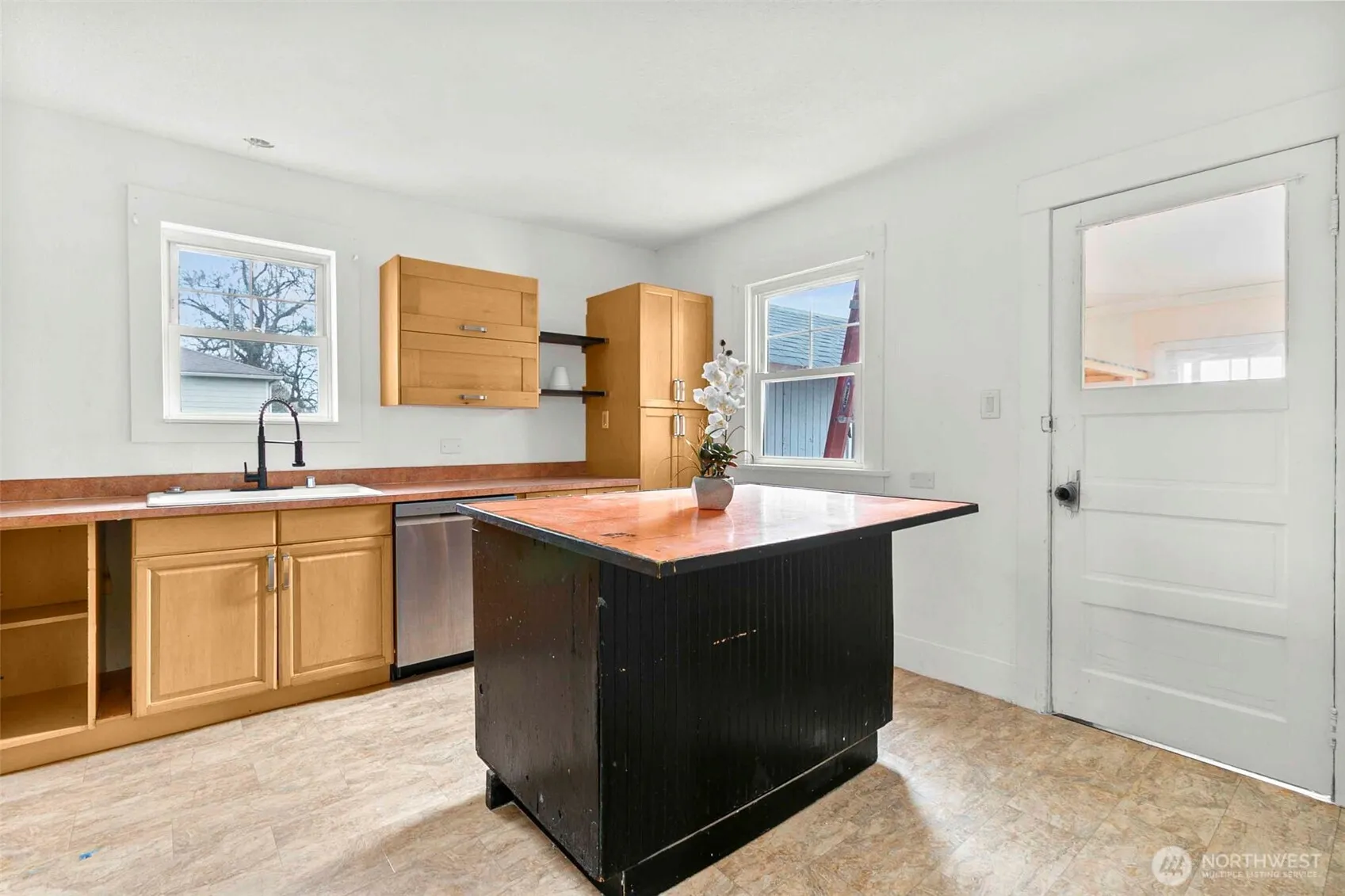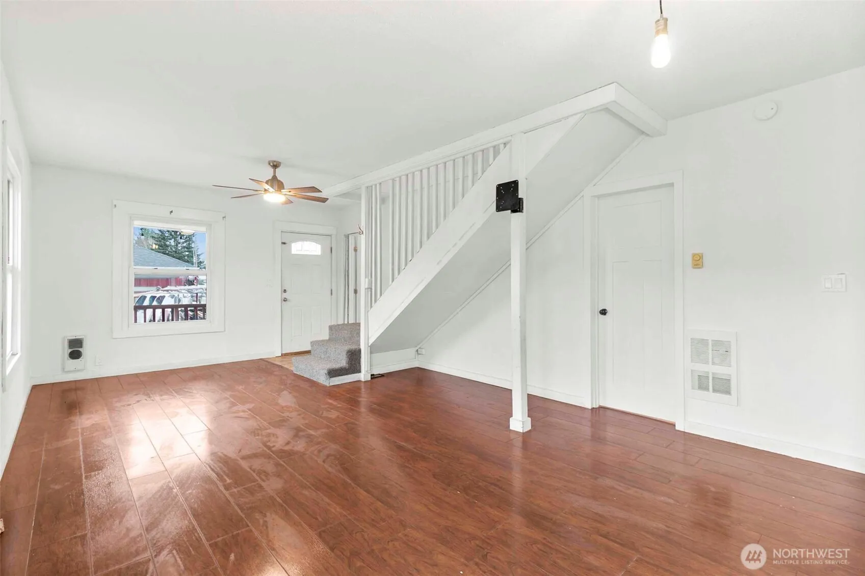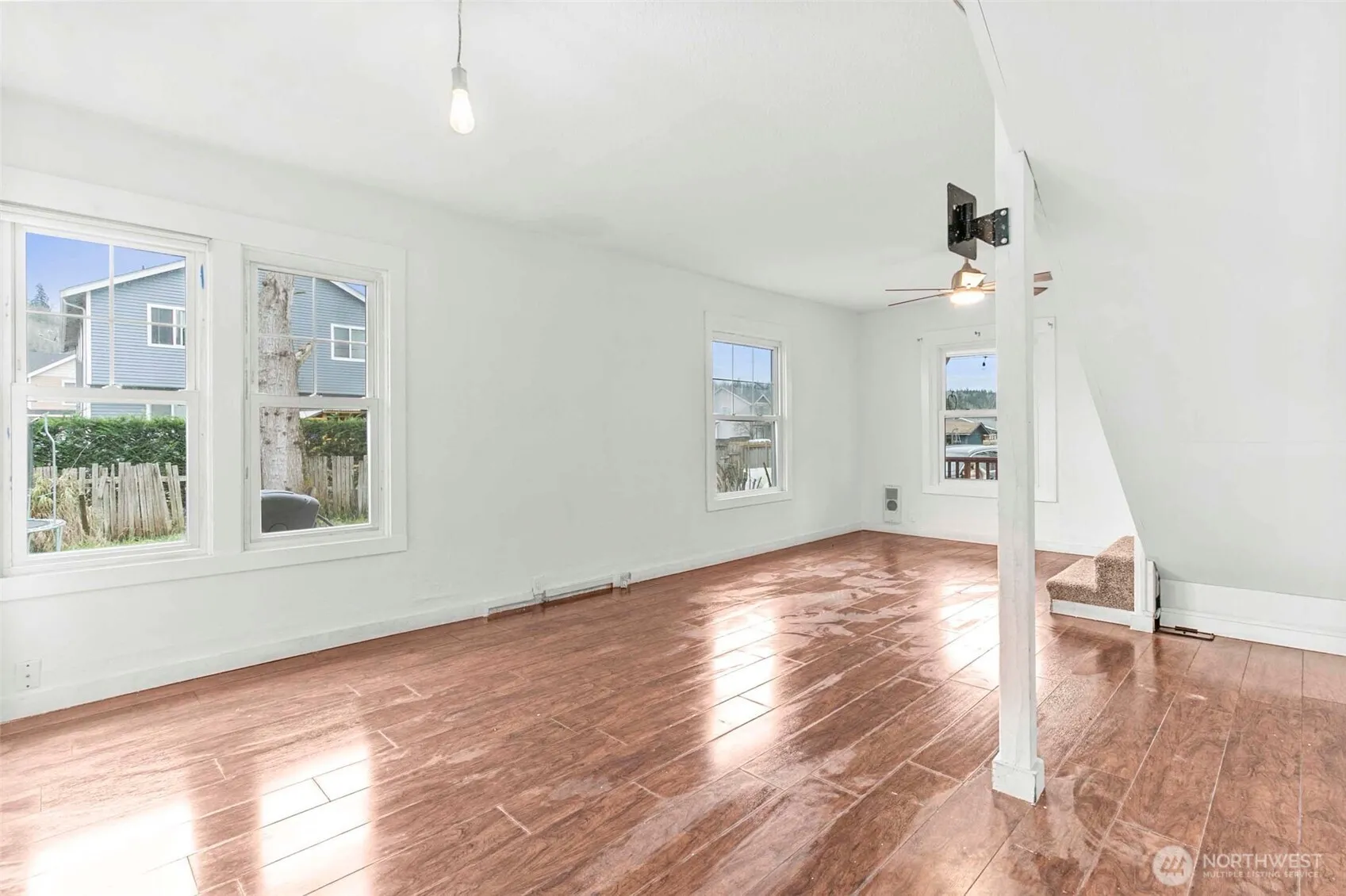 Tucked in off the street, this charming 4-bedroom, 2-bath home offers privacy, flexibility, and room to grow. The welcoming covered front porch opens to a functional layout featuring laminate flooring, a cozy living room and ample storage throughout. Spacious kitchen offers plentiful cabinetry and a large island perfect for everyday living and entertaining, large pantry and laundry room with shelves and backyard access. Two main-level bedrooms share an upgraded bathroom. Upstairs, you’ll find two additional bedrooms along with a fully updated bathroom and a unique floor plan. Large lot with potential room for a shop—ideal for pets, hobbies, or future plans. Great location close to freeway, shopping and dining. No HOA Come make it your own! Sold As-IS!
