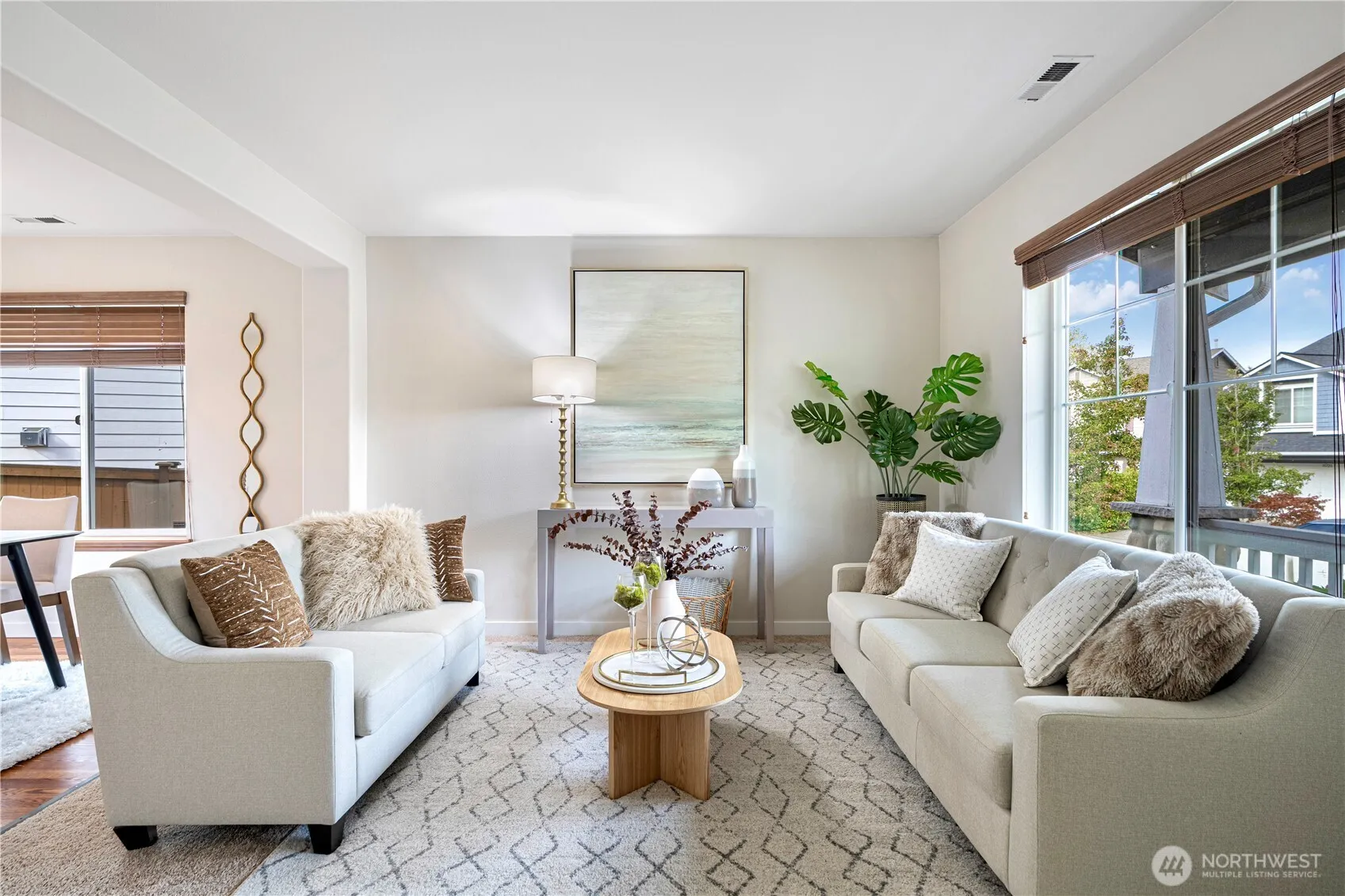 Beautifully updated home in the sought-after Outlook Ridge community just north of Mill Creek. The spacious kitchen with island, granite countertops, stainless steel appliances, and hardwood floors opens to formal living, dining, and family rooms with a gas fireplace—ideal for entertaining. Upstairs offers five generous bedrooms, including a primary suite with full bath and walk-in closet; the fifth bedroom works perfectly as a bonus room or office. Enjoy the fully fenced, level backyard with oversized patio. Recent updates include new laminate flooring, interior paint, recessed lighting, air conditioning, and a smart lock. Conveniently located near top schools and shopping.