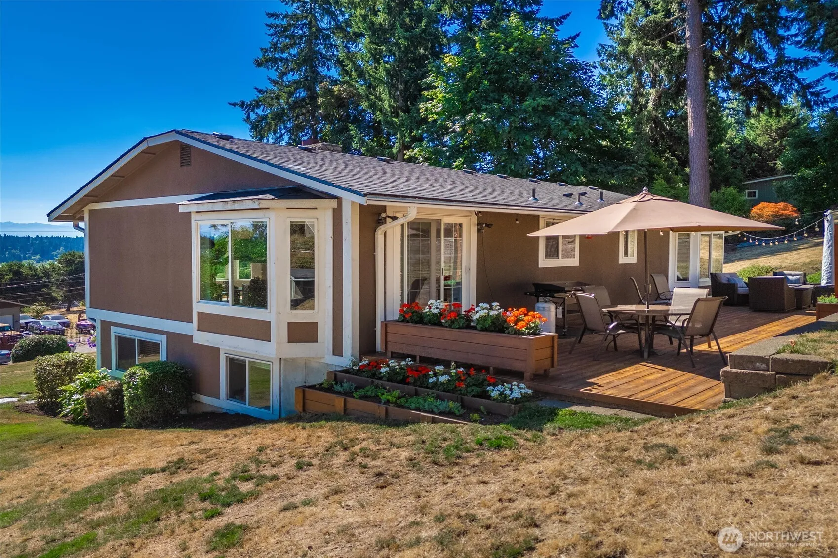 Beautiful view home with 3-bedroom plus bonus room (or 4th bedroom w/closet), 2.75-bath on shy half acre in desirable Fife Heights. Airy floor plan, kitchen with double ovens—ALL appliances stay! Brand new one-year-old roof, upgraded blinds, and laminate flooring throughout. Two cozy wood-burning fireplaces add warmth and charm. Picture windows bring in natural light and highlight the peaceful, private setting. Spacious back deck overlooks a lovely backyard—perfect for outdoor living. Extra parking plus 2 car garage! Great value and wonderful space!