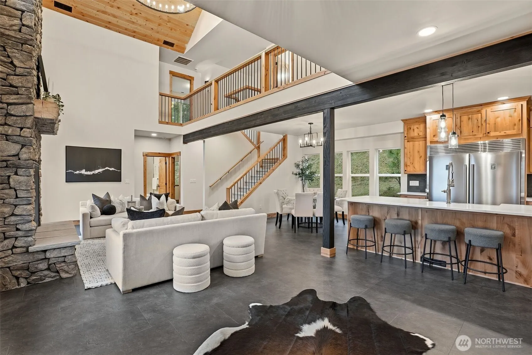 Privately tucked on 2.9 serene acres, this new construction 5 bed, 5 bath home + 1 bed, 1 bath ADU features custom finishes throughout. Main floor offers open-concept living, custom stone fireplace, and chef’s kitchen w/ knotty alder cabinetry and Forno appliances: 60” dual fridge, 48” 8-burner gas range w/ dual convection + rotisserie, microwave, 2 dishwashers, and 2 sinks. Main level includes bed, office, full bath, laundry. Upstairs: primary w/ balcony + spa bath, plus 2 beds + full bath. Lower-level suite w/ living, dining, kitchenette w/ bar, ensuite bath w/ 72” tub + guest bath. 3-bay garage + ADU + generous off-street parking and RV space. 400-amp service, multiple HVAC, mini split.