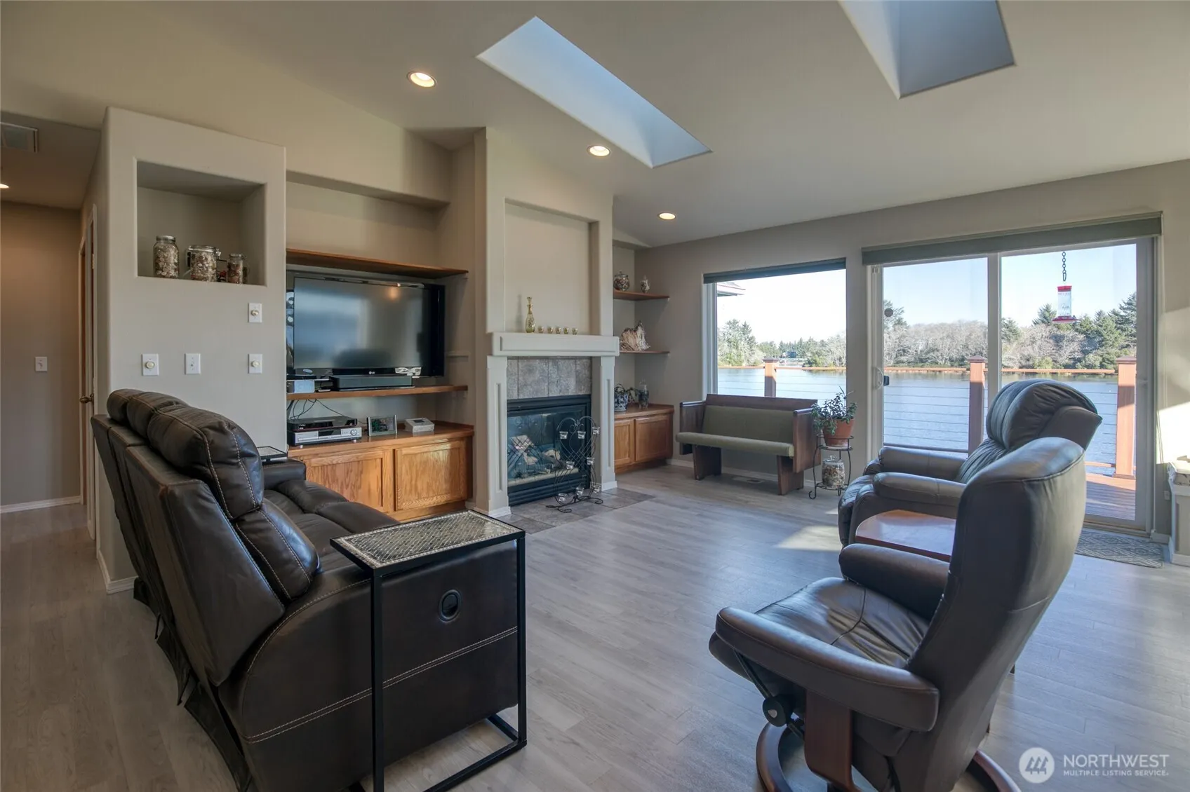 Experience the best of waterfront living on Duck Lake in Ocean Shores! This spectacular 3-bedroom, 2-bath rambler captures panoramic lake views and a versatile layout ideal as either a full-time residence or a vacation getaway. Designed for comfort and recreation, the home offers an attached 2-car garage, new 14′ x 22′ detached garage, RV parking, plus a 10×12 shed with loft for additional storage and hobbies. The entertainment-grade composite deck leads to a private dock with kayak launcher, perfect for morning paddles, sunset views, and year-round lakeside enjoyment. Inside, the updated kitchen features quartz countertops and stainless-steel appliances, complemented by LVP flooring throughout the main living spaces and new double-pane vinyl windows. The living room showcases vaulted ceilings & a cozy gas fireplace that perfectly frames the water views. The primary suite offers its own full bath, creating a private retreat. Recent upgrades include a new roof and Leaf Guard gutters, offering peace of mind and low-maintenance living. Built in 2000 on a .275-acre lot, this home blends modern updates with a relaxed waterfront lifestyle. Whether hosting guests, launching kayaks, or simply taking in the scenery, this property delivers recreation & relaxation in equal measure. Located in desirable Ocean Shores, known for beaches, wildlife, canals, golf, 24/7 year-round fishing, clamming & endless outdoor activities, this is a rare opportunity to enjoy coastal living at its finest.