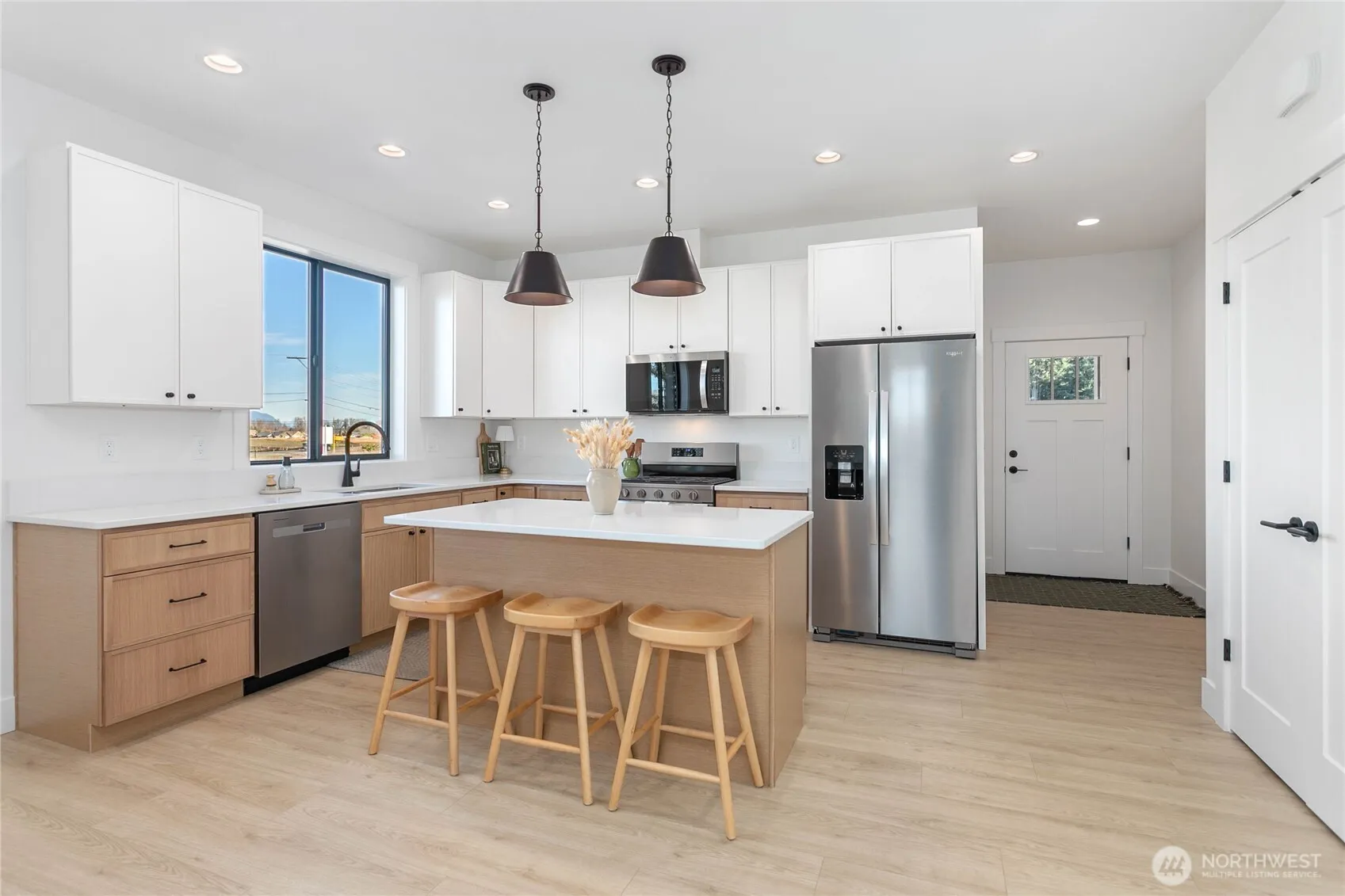 There’s something about a brand-new home that just feels easy and stress free—nothing to do but move in and enjoy. That’s how home buying should be. This home is perfectly located in the heart of beautiful Whatcom County. It offers a bright open living space with vaulted ceilings, simple yet modern finishes. The kitchen is designed for real life: plenty of counter space, a true island, and a layout that keeps everyone connected whether you’re cooking, hosting, or just hanging out. Upgrades include 400+ sq ft of storage/attic, EV charger ready, ethernet throughout, and back-up generator ready.