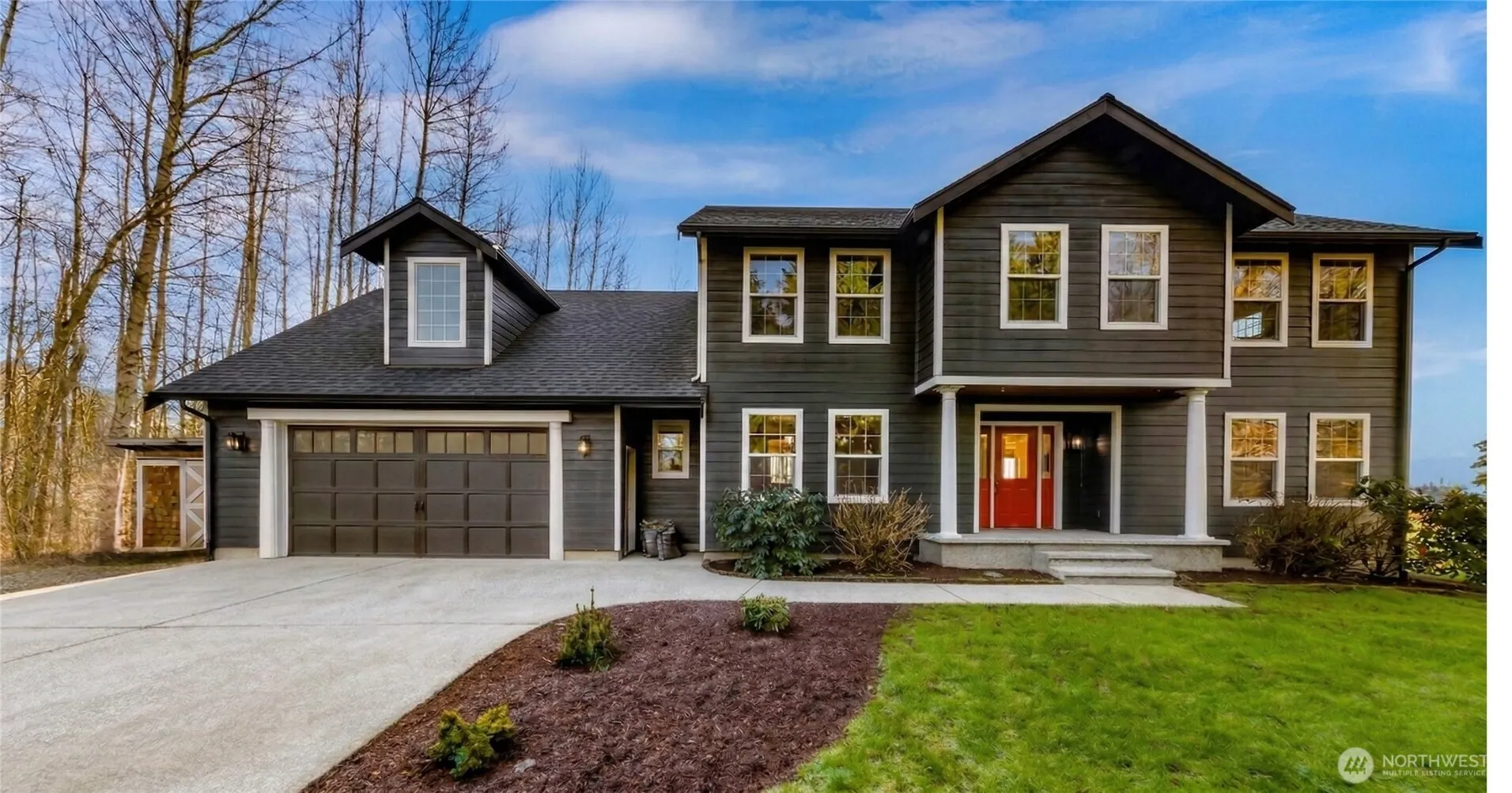 Set just outside Everson, this 2005 NW Contemporary two-story offers over 2,800 square feet with 4 bedrooms and 2.5 baths on 9.9 acres of level open space. Fresh new exterior paint sets the tone, and inside you’ll find hardwood floors, abundant natural light, and a gas fireplace anchoring the main living area. The open main floor keeps the kitchen, dining, and living areas connected, with granite countertops, custom cabinetry, stainless appliances, and a new range. Upstairs includes the primary suite plus three additional bedrooms, while a large bonus room above the garage adds flexible space for work, hobbies, or recreation, and the main-level laundry room adds everyday convenience. Morning coffee feels quieter here, with open-sky light across the acreage and the fireplace waiting when the sun drops behind the mountains. Step out to the spacious deck that captures big-sky sunsets over territorial and mountain views. Expect daily nature moments: Anna’s and rufous hummingbirds working the honeysuckle in the backyard, cedar waxwings sweeping through the trees, and great horned owls calling at dusk. The acreage offers room to garden, keep animals, and enjoy a quiet rural setting. Property is currently in an Open Space designation that may provide tax benefits; buyer to verify eligibility and continuation. The attached garage and wide gravel drive provide plenty of parking, including space for RVs and additional vehicles.