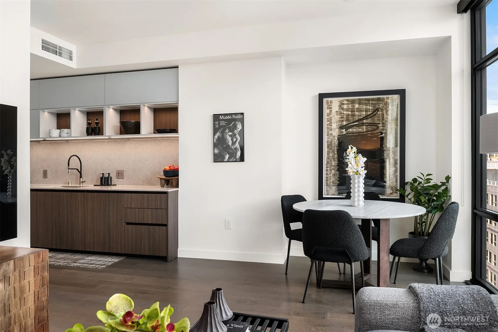 Nestled in the heart of downtown Bellevue, this brand new luxury condo offers a refined open one-bedroom, one-bath retreat crafted for modern living. Smart and functional, the residence boasts top of the line fixtures from world renowned brands, blending elegance with practicality. Thoughtfully crafted interiors feature harmonious tones, clean lines and discreet textures, creating a balanced environment that nurtures well-being. Beyond your private sanctuary, enjoy amenities including a fitness room, stylish lounge and dog run. The building’s modern lobby welcomes you with dramatic lighting, a living wall and a striking fireplace – signaling your arrival at a place where luxury and wellness converge seamlessly .