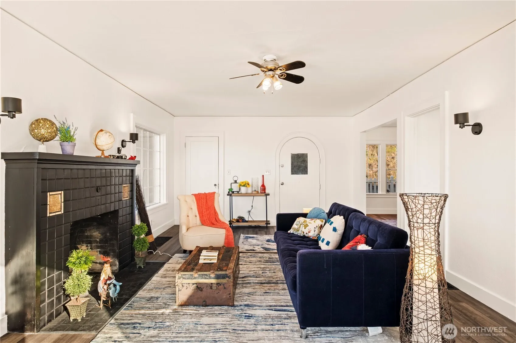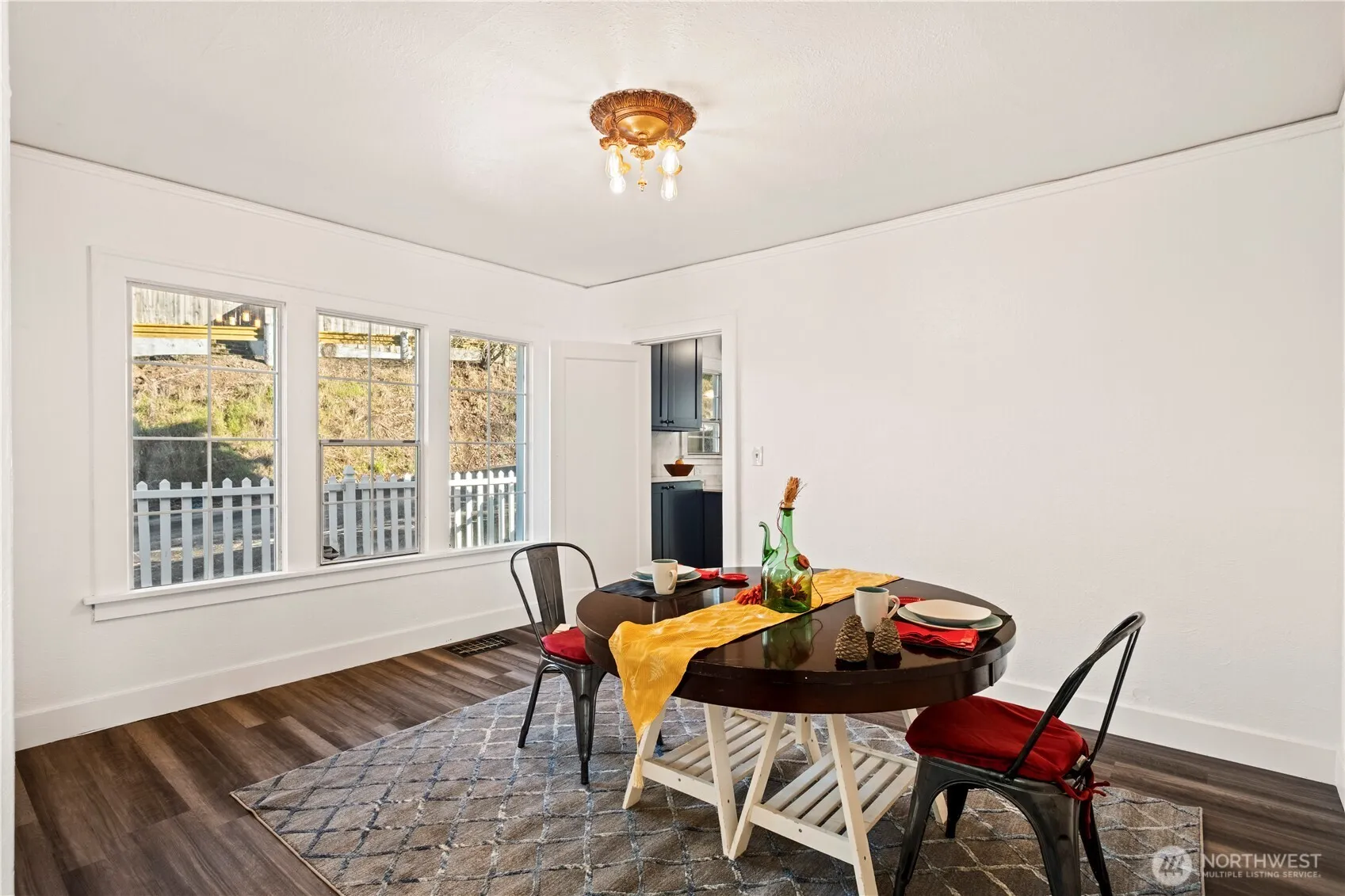 1930s Stunner, all freshly updated! With four bedrooms, two baths The Home features new everything, gorgeous blue kitchen cabinets, quartz counters, stainless appliances, 2 new bathrooms with subway tile-themed walls, and new paint and flooring throughout! Perched on the hill, it has a huge south facing deck providing gorgeous territorial views and sunsets . There’s a strange recording studio bonus room in the full, bright, unfinished basement, and a big back yard awaiting your designs.