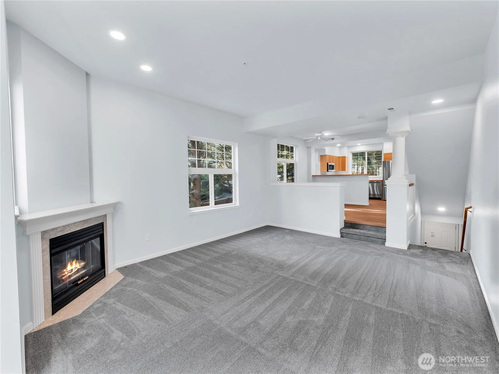This end unit townhome just north of Factoria has had a refresh! With no attached unit on the right side, this unit feels airy & bright. main level entry & extra deep 1 car garage access. 2nd story opens to a vaulted ceiling living room w/ fireplace & access to the deck. A large dining room means you can host which opens to the kitchen offering new SS appliances. The entire unit has NEW interior paint, toilets, carpet & LVP flooring. Don’t miss the laundry room & powder bath. All appliances stay -W&D also brand new. Top floor vaulted ceiling bedroom suites both feature full baths. Front bedroom has a walk-in closet while the back bedroom has a continental style 5pc bath & double closets. Location can’t be beat. Low maintenance living that feels like a home within minutes to I-90 & I-405.