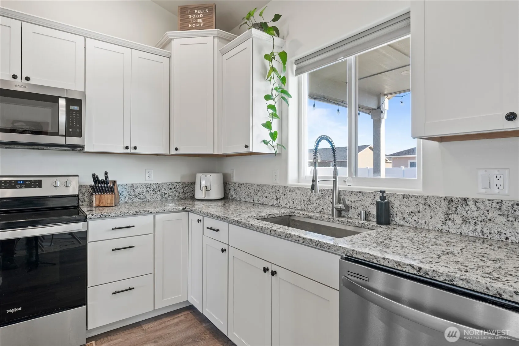 Exceptionally well built 3 year old Home on a great fenced lot. This beauty has an amazing kitchen with a spacious island, stone countertops, soft close cabinetry, and an enormous amount storage all in quality products. The Primary bedroom has an enormous walk in closet, en suite bathroom; Bedrooms 2 & 3 are positioned across the home for privacy. For garage enthusiasts, Size Matters, and this attached garage is 40′ long and 900 sq feet – large enough for 4 vehicles, or 2 extended cab pick ups and 2 small cars! This home is a quality build product in a like new condition.