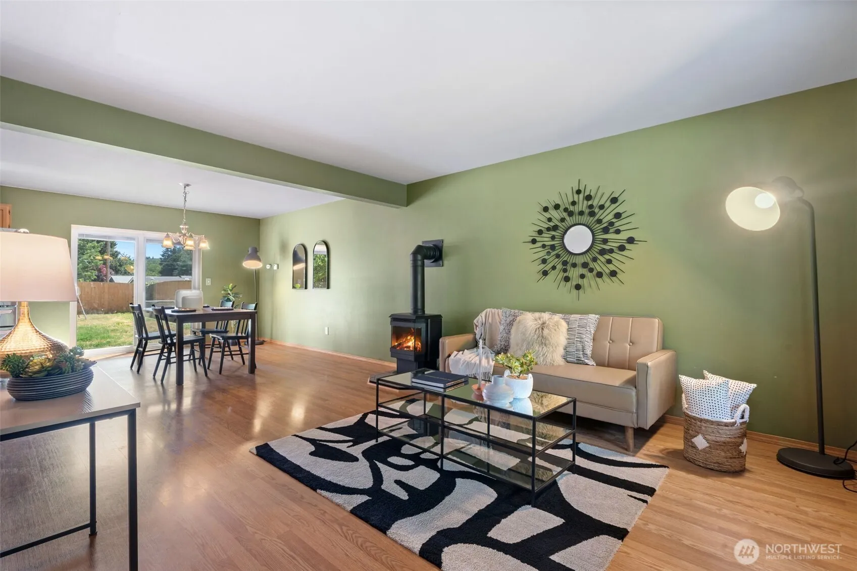 OFFERED AT WELL UNDER TAX ASSESSMENT! This Fabulous 3-bedroom, 2.5-bath Kingston home just 11 minutes to the ferry and 16 minutes to Poulsbo! Thoughtfully designed floor plan offers space for everyone. Full of charm inside and out—relax on the covered country porch or entertain in the private, fully fenced backyard. Cozy propane stove for those chilly days. The primary suite offers a walk-in closet and attached bath. You will enjoy the Asian pear trees. Neighborhood offers two community parks, including one with beach access, a playground, picnic pavilion, and boat launch. And a BB court. Close to schools/shops & commuter routes!