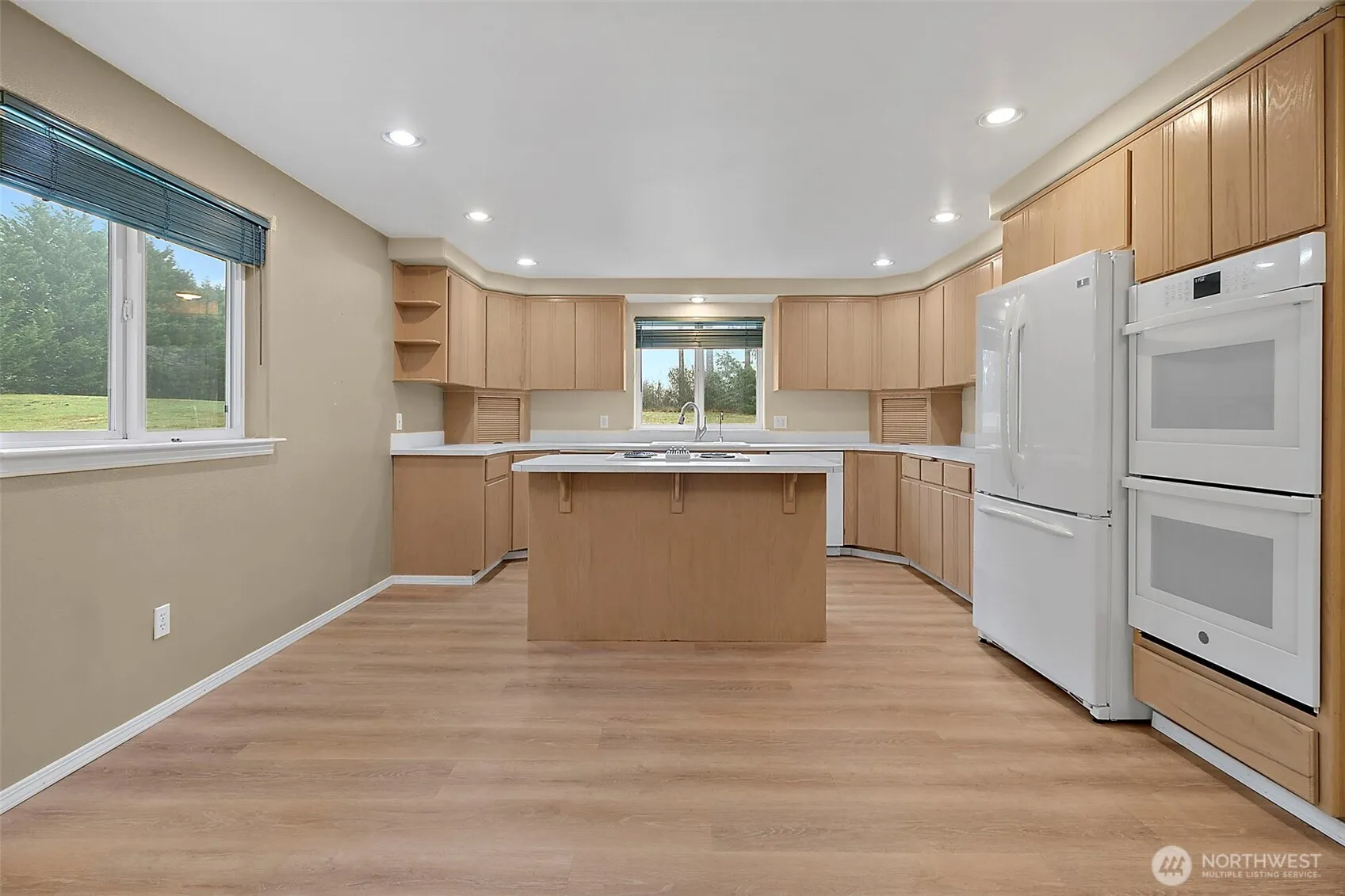A truly special, one-of-a-kind property set on nearly two level acres, offering space, privacy, and endless possibilities. A charming circular driveway welcomes you home to this beautifully maintained 2,160 sq. ft. rambler, complete with a barn and a detached garage featuring two versatile shop areas—perfect for hobbies, storage, or creative projects. Inside, the expansive primary suite is a private retreat, featuring a cozy fireplace, walk-in closet, and a spacious en-suite bath designed for relaxation. The heart of the home is the bright, oversized kitchen with abundant cabinetry, double ovens, pantry closets, and generous storage—ideal for gathering, cooking, and entertaining. Gleaming hardwood floors and updated windows fill the home with warmth and natural light, while air conditioning ensures year-round comfort. With an inspected septic system, a private individual well, and numerous updates throughout, this home offers peace of mind as well as charm. Enjoy the rare combination of country-like space with the convenience of nearby shopping, restaurants, freeway access, and a wonderful walking area. This is more than a home—it’s a lifestyle.