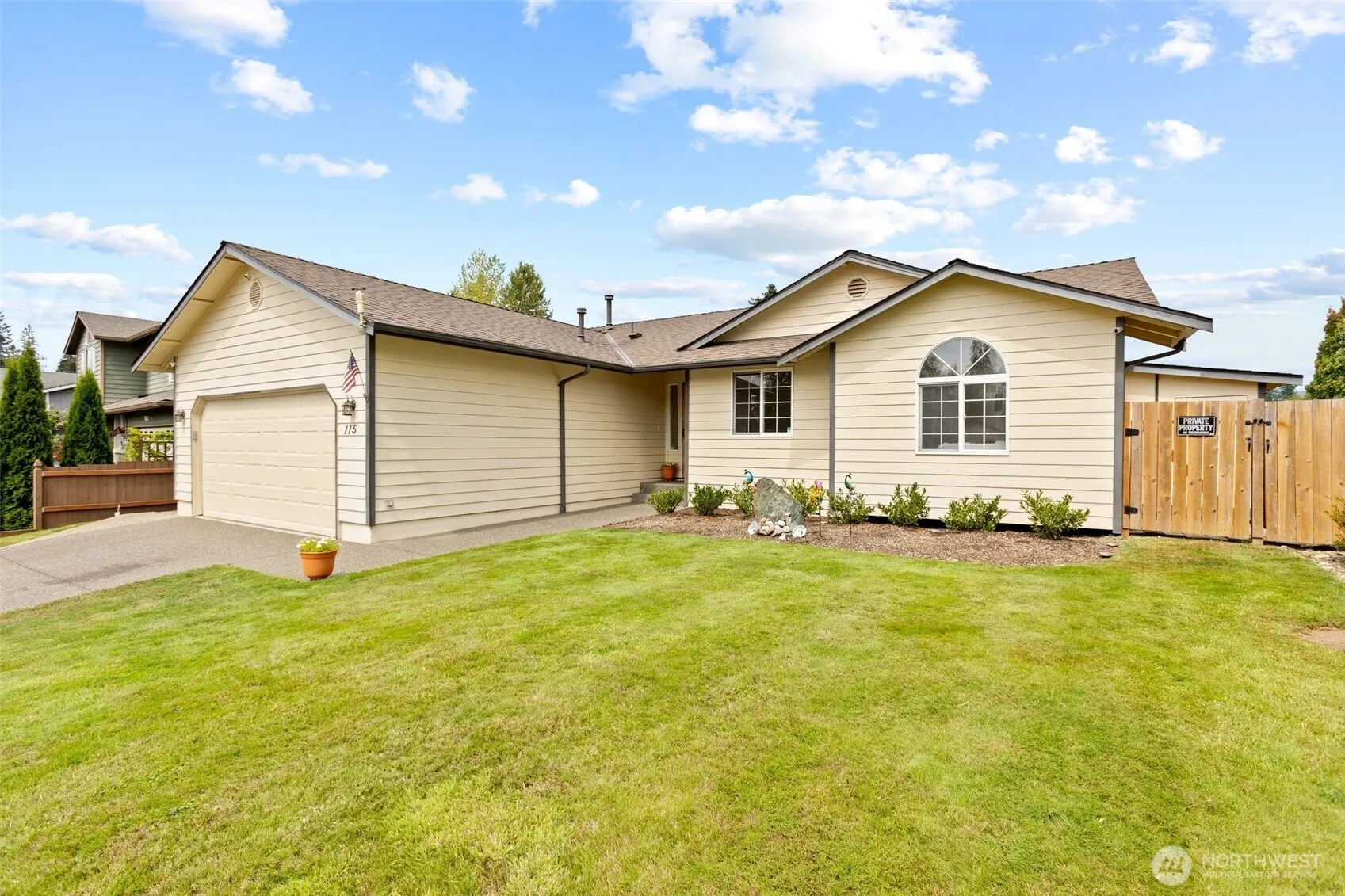 Welcome home to this beautiful rambler in the heart of Granite Falls. It is located in a quiet neighborhood with sidewalks and is a short walking distance to town. This 1,238 sqft one level house has 3 bedrooms and 1.75 baths. The main living and kitchen area has vaulted ceilings, french door access to covered deck, and a gas fireplace. The spacious primary suite has doors that open directly onto the deck as well. The fully fenced yard provides plenty of room for play, pets, or gardening. The 2-car garage adds convenience and storage. Short drive to hiking trails & several river access points.
