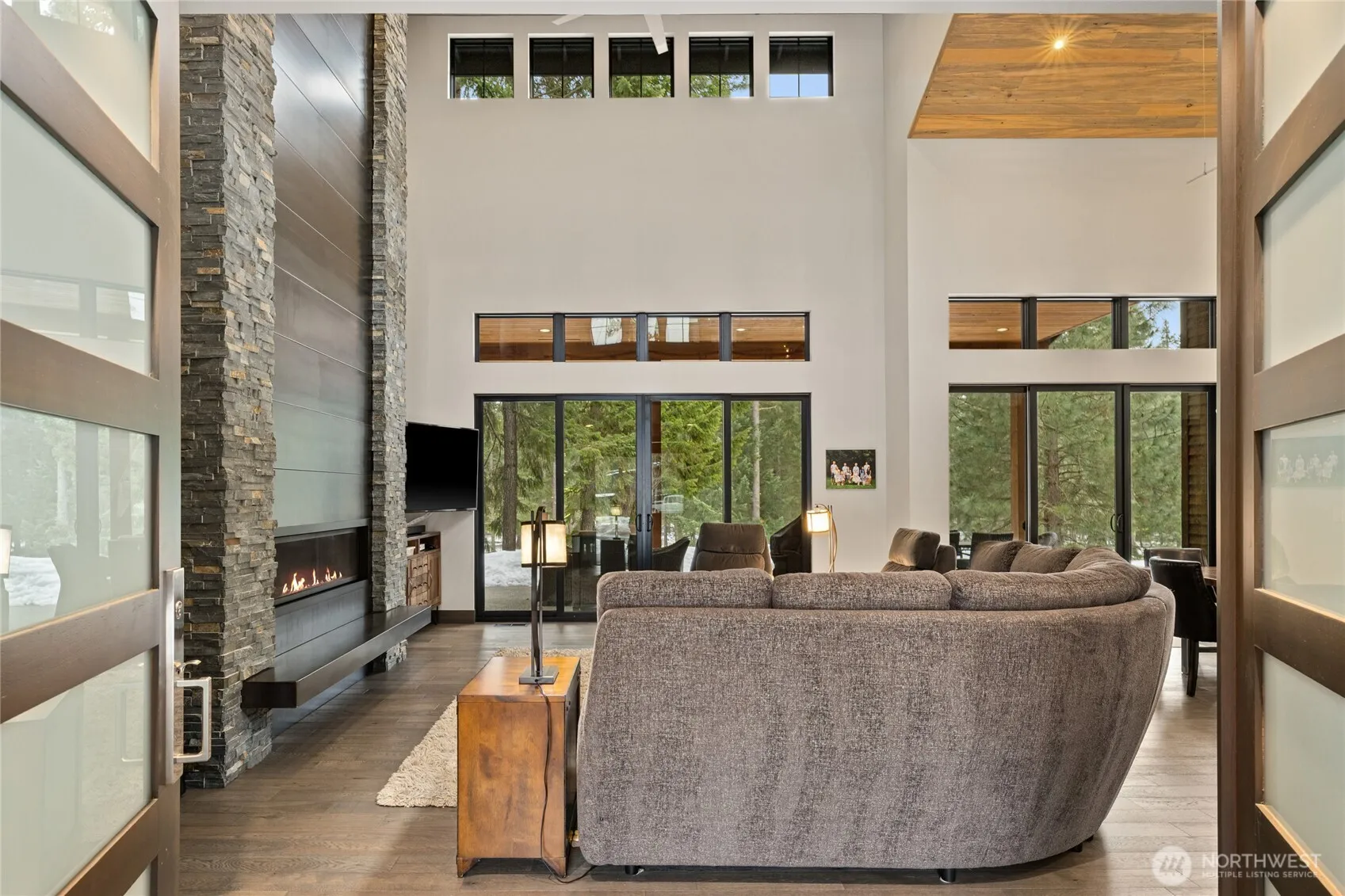 Experience the perfect fusion of mountain charm and contemporary design in this five-bedroom, five-bath home with a versatile bonus room. Perched above Rope Rider’s 4th Fairway, the residence is filled with abundant southern light, soaring ceilings, and expansive windows. The great room showcases a striking floor-to-ceiling stone and steel fireplace and opens through dual sliders to an expansive outdoor living space with hot tub, firepit, and desirable southeastern exposure. The main level features a primary suite with slider to the outdoor area, plus an office or den that can also serve as a bedroom. Upstairs offers three additional bedrooms and a generous bonus room. Tucked away on a quiet cul-de-sac, the home provides direct access to a nearby paved trailhead leading to Suncadia’s outdoor amenities and Dawson Park—ideal for relaxed, resort-style living.
