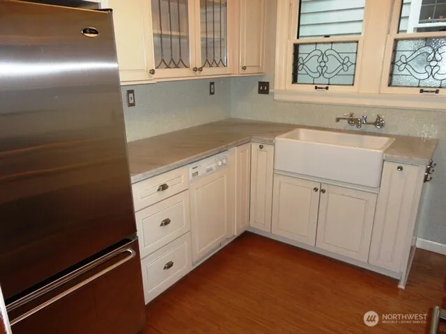 Quality-built classic Tudor, brick home that has been kept in great condition. Classic updated kitchen with slab marble counters, full tile backsplash and stainless-steel quality appliances. The old-world charm with hardwood flooring, mahogany woodwork, rounded ceiling and a decorative fireplace in the living room and arched leaded windows as well as arched entryways. The 2nd bedroom is on the main level and very large master bedroom is upstairs. Full bath on main floor, ½ bath on upper level. The large bonus room is on the lower level with the washer and dryer and storage.Landscaped yard that is very private and features a stone patio and fencing. Single car detached garage. Gas heat. Terms: 1st, last, 1 month rent deposit. 6 or 12 mth lease. No smoking. One pet okay; subject to additional deposit and restrictions. Co-signers ok. Renters insurance is required. Minimum credit score: 700+. Verified income ratio: 3:1.