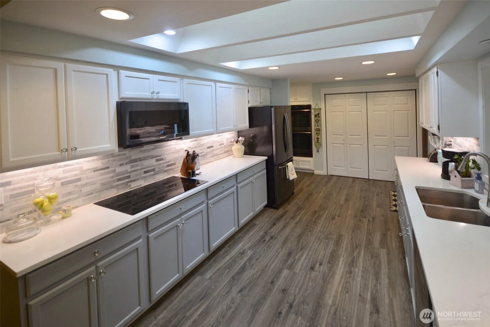 This delightful rambler is on a quiet street and just steps away from Lawrence Lake. Spacious 1,658sf with 3bedrms & 2 full baths. Living rm faces front of the home. Fully renovated & expanded kitchen is a jewel, with gorgeous cabinetry, quartz counters, large pantry & top of the line appliances. Sizeable family room is being used as a dining rm. Very versatile space. Roomy main bdrm boasts an ensuite bath & 2 other bdrms share a 2nd full bath. So much more: vaulted ceilings, laminate floors, commercial unit for heat/AC, skylights, sliders to covered deck etc. Backyard is your own oasis with pond & water feature, wood shed and an ornamental bridge….right out of a painting. Take advantage of the lake, parks, docks, clubhouse all yr long. It doesn’t get any better than this!