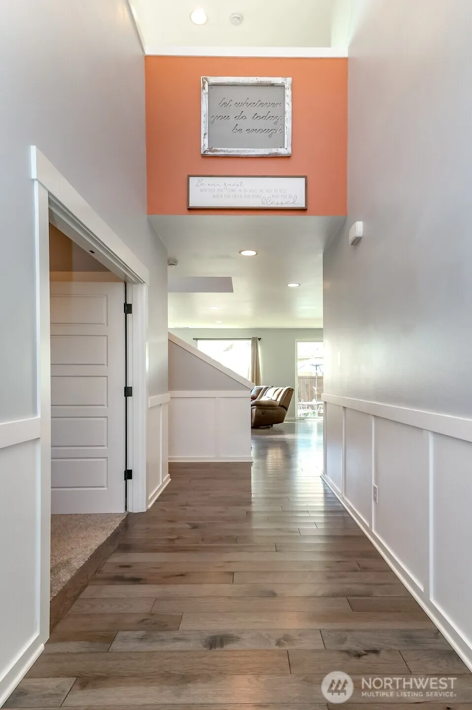 Welcome to a beautiful home with an awesome view of Mt Rainier, in sought after Dylan Heights! This beautifully designed home offers 2,135 sq ft of well-planned living space with comfort and flexibility in mind. The kitchen shines with a large island featuring beautiful granite countertop, dark wood cabinetry, and stainless appliances. Luxury wood flooring throughout the main level where a cozy gas fireplace warms up the area. Living room, dining room and kitchen give the main floor a cozy feeling. The dining room glass doors opens up to a comfortable outdoor patio. Main floor also includes a bedroom and 3/4 bath available for guests or office! Upstairs is a great view of Mt Rainier in the Bonus Room at the top of the stairs. The Primary Suite is oversized, great walk-in closet and complete with shower and soaking tub plus a partial view of Mt Rainier. This floor also has 2 other bedrooms, large laundry room and storage space. The two car garage has plenty of both car and storage space! Outside, a beautifully finished patio and four solar panels add energy efficiency. Conveniently located near major commuting routes, shopping and local amenities, this move-in-ready home offers the perfect blend of location, space and quality.