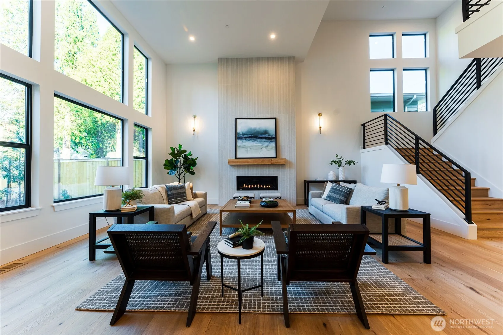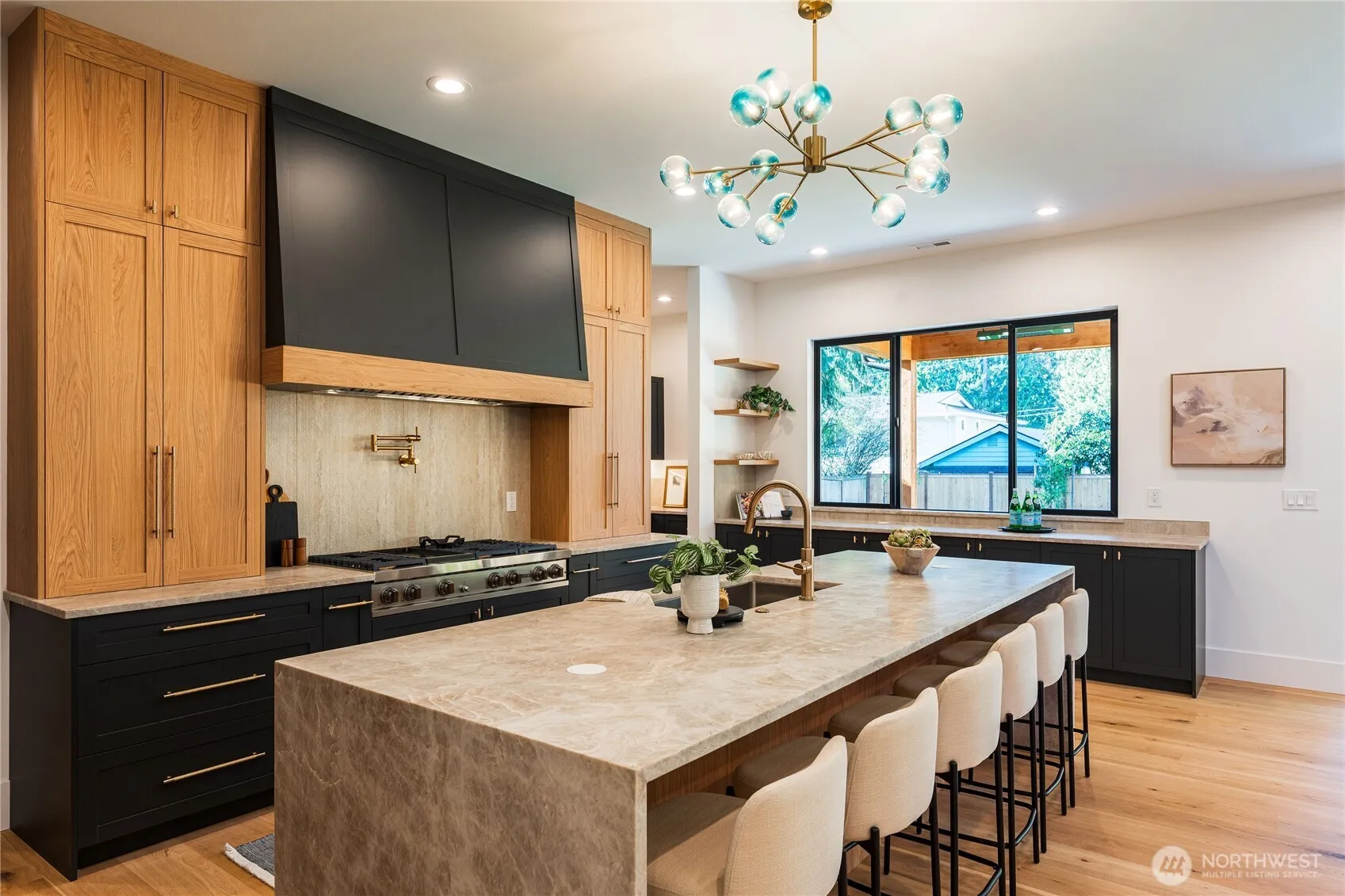 Welcome to a stunning contemporary masterpiece in South Juanita where design meets functionality. An intentional, custom-designed residence that defies the ‘cookie-cutter’ mold. You are greeted by dramatic, two-story volume ceilings in the great room, creating an airy ambiance that begs for gatherings. The culinary center is a showstopper, boasting Dacor appliances (Dacor offers 6-burner ranges with cast iron griddle) and natural quartzite Taj Mahal, supported by a convenient second working kitchen to keep your main space pristine while hosting. The kitchen’s centerpiece is a monolithic, 10-foot island of hand-selected Taj Mahal quartzite. Crafted from a single, seamless slab of natural stone, it features integrated wireless charging and discreet pop-up outlets for a flawless, tech-forward surface. Step through sliding glass doors to your private outdoor sanctuary, featuring a covered patio with infrared heaters that allow for alfresco dining in any season. Upstairs, the primary suite serves as a spa-like escape with a deep soaking tub, massive shower and heated floor. Featuring premium engineered hardwood with a substantial 3mm wear layer, offering the enduring quality of solid wood with the flexibility to be fully sanded and restained for a fresh aesthetic in the years to come. With a coveted main-floor guest suite, solar panels, metal roof, and a location within the acclaimed Lake Washington School District, this home offers an uncompromising lifestyle of modern elegance.