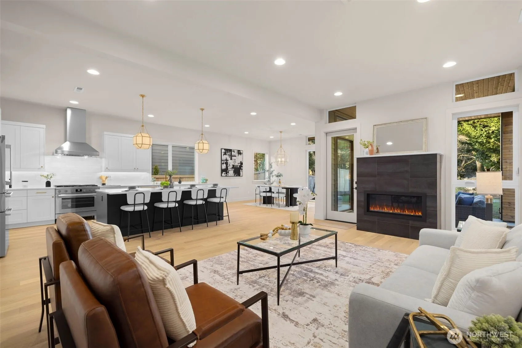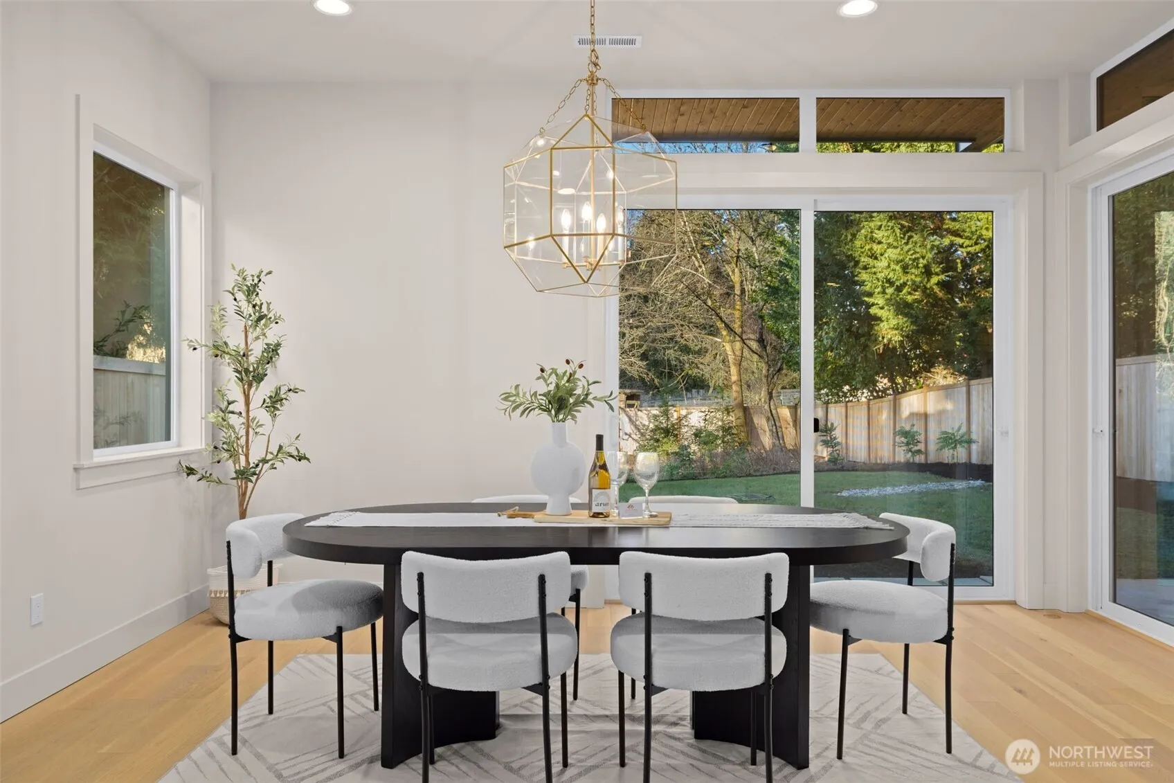 Situated along a quiet lane in Holmes Point, this 2024-built contemporary home offers a calm, light-filled retreat shaped by thoughtful design and a deep connection to nature. Sunlight drifts across hardwood floors, illuminating an open concept living space anchored by a refined kitchen with a generous island, Bosch appliances, and a walk-in pantry. Outside, a covered patio and broad, sun-washed lawn invite lingering afternoons, birdsong, and a gentle sense of retreat. Above, the primary suite gazes over the fenced backyard, offering heated floors, a freestanding tub, and a spa-inspired rain shower, joined by a 2nd ensuite, 3 additional bedrooms with walk-in closets, and a luminous bonus room. Comfort and efficiency are quietly elevated with a Navien tankless water heater, ERV fresh-air system, whole-house dehumidification, EV charging, and a 3-car garage. With neighborhood trail access less than a block away, the wooded corridors of Big Finn Hill and St. Edward’s Park unfold into miles of trails winding through evergreens toward shoreline connections and the enduring pull of Lake Washington.