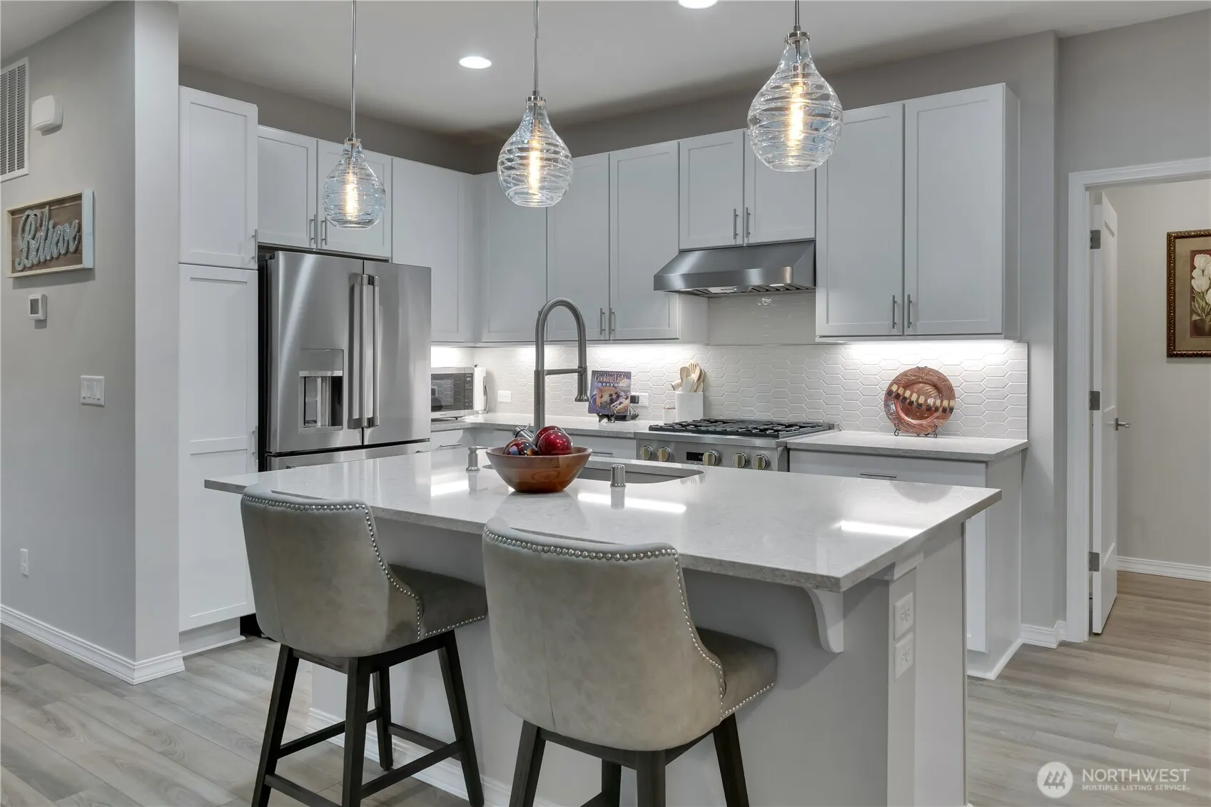 Discover modern living with traditional comfort. Just shy of 2300 sq ft, this 4 bedroom townhome boasts two main-floor bedroom/bathroom retreats, mountain views and easy access to Maple Valley’s best trails and walkability. Stunning home features flexible main floor living, plus two additional upstairs bedrooms, a 3rd bathroom, a versatile bonus room, and a spacious loft, making this home perfect for work, games, and guests. Ideal for multi-generational living or entertaining, this townhome provides privacy and luxury with upgraded Monogram suite of appliances, tinted privacy windows, luxury lighting, and remote control black out blinds. The 2-car garage features custom epoxy flooring, gorgeous cabinets, and an EV charging station. Tile flooring in all 3 bathrooms make each one feel like a spa. Specializing in 55+ luxury living, Meadow Ridge also allows for adult children. The spectacular clubhouse offers opportunity to expand entertaining or socialize with neighbors. A convenient commute to HWY 18 or 405 offers quick connection to hospitals amenities and recreational activities. Walk your way to the trails, coffee, Pilates and more.