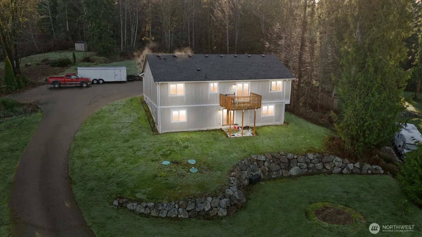 Discover this private, east-facing property at the end and top of the road overlooking Schwartz Lake. Trailhead to the lake next to the property. Fabulous views, breathtaking sunrises, and sunsets. The well-designed main floor features all current bedrooms, bathrooms, kitchen, dining, and living. Deck off dining area. The lower level has French doors access to the yard and features a huge 45′ x 20′ rec/game room/possible MIL/ media room/or even a new luxury primary bedroom! Pool table and air hockey table negotiable. There’s an added partially finished bathroom. Large, 27′ x 8′ separate storage room. Substantial paved parking for multiple vehicles, RVs, and toys. The extra-wide 2-car garage has overhead storage and ample space for your workshop. Easy maintenance landscaping and a large detached shed with power. The upper tier of the property could be a location for that new shop! (Buyers to verify) Riding mower negotiable