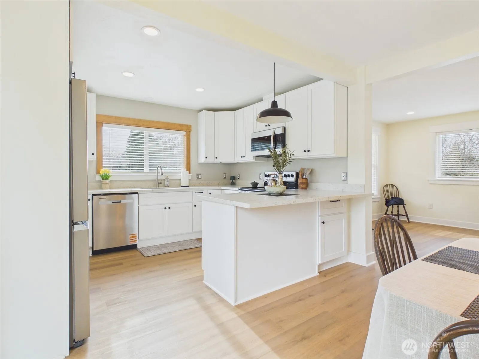 The Schoolmasters House. Charming Craftsman-style cottage situated on Flat 2.46 Acres, completely restored from top to bottom with high-quality materials and exceptional workmanship. This thoughtfully designed residence offers two bedrooms plus an office (or studio), three dormers, and a flexible upstairs primary or junior primary suite. The property is served by a private well and septic system. The inviting kitchen features granite countertops, new appliances, and a well-designed eat-in area ideal for everyday living. Attention to detail is evident throughout, including custom clear Hemlock panel doors, Craftsman-style solid wood painted trim, high-quality locking mortised hemlock pocket doors. Additional highlights include a lifetime metal roof, a Swiss Madison toilet in the efficiency bath, fast-charging phone outlets in the bathroom, hot and cold exterior water, a worry free fully insulated well house, and a UV water treatment system. A mini-split system with Bluetooth connectivity and integrated Bluetooth speakers in the laundry room and bathrooms add modern convenience. A two-car carport and functional storage shed complete the property. A unique offering combining quality construction, efficiency, privacy, and timeless character. Word has it this was formerly the schoolmasters house.