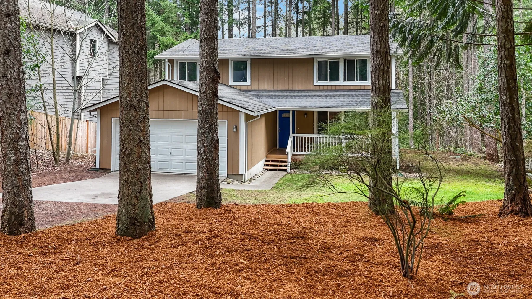 Welcome to the highly desirable Clearwood community, where natural beauty and everyday convenience come together. Surrounded by evergreen and madrona trees, this unique neighborhood offers scenic walking trails and a peaceful no-wake lake, creating a serene, year-round retreat. This charming two-story home is ideally located just inside the back gate, offering efficient access to JBLM and convenient routes throughout Thurston County. With nearly 2,100 square feet of living space, the home features three generously sized bedrooms, along with both a living room and a family room—providing flexibility for everyday living and entertaining. Step outside onto the back deck and take in views of soaring Douglas firs, accompanied by the calming sounds of a nearby babbling brook—a perfect setting to relax and unwind. Ask your Agent about VA assumable loan.