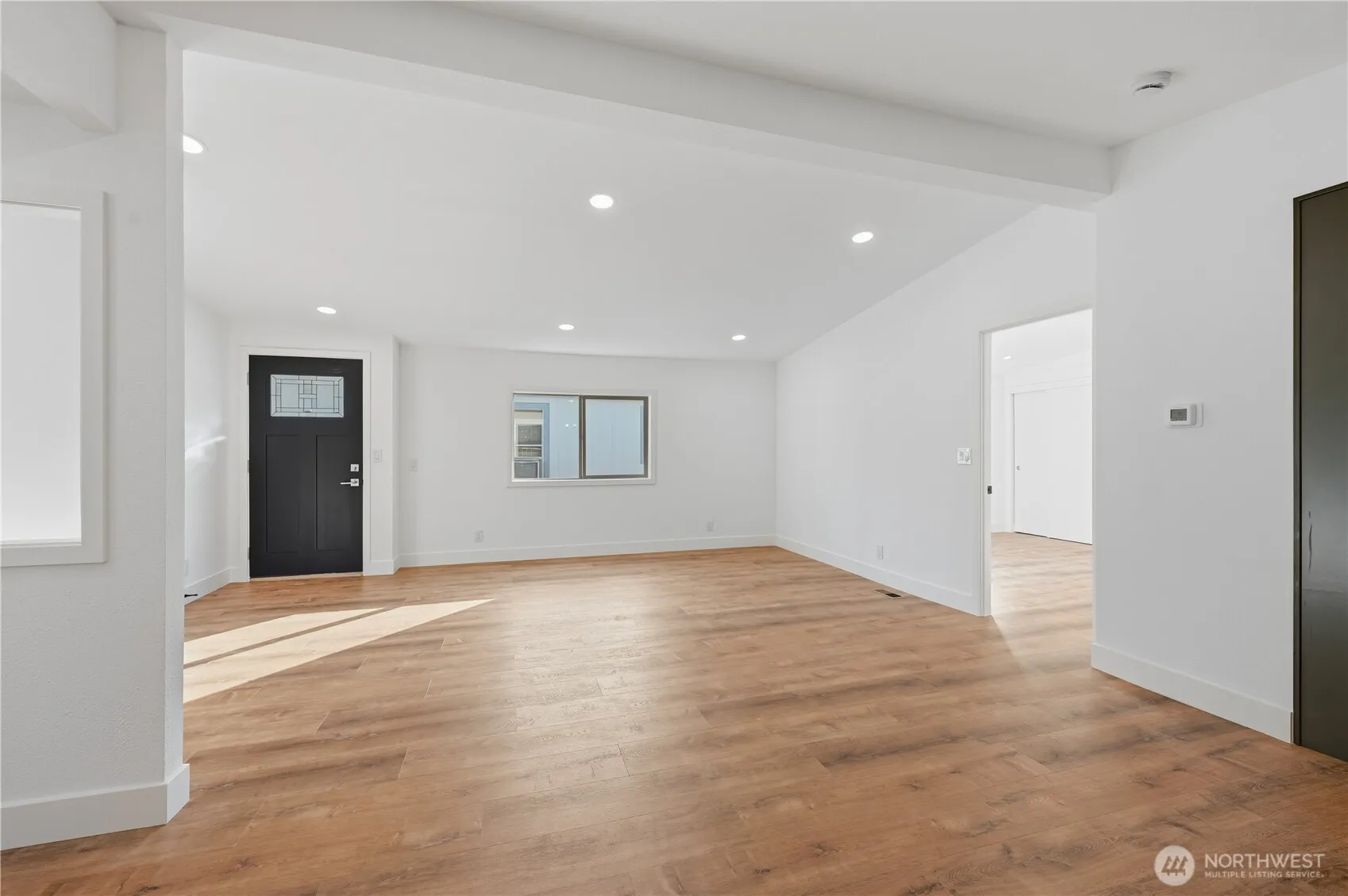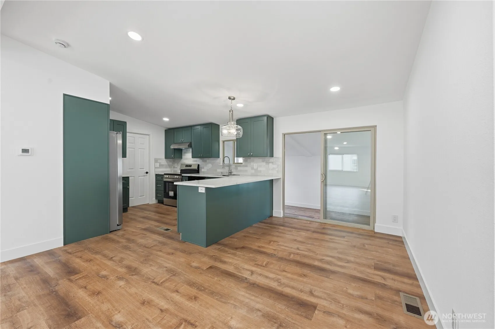 Welcome to your beautifully remodeled home in an ALL-age park! Fully updated with new electrical, plumbing, LVP flooring, lighting, and fresh interior/exterior paint. Enjoy the open-concept layout with vaulted ceilings and a stunning kitchen featuring new cabinets, quartz countertops, tile backsplash, and stainless steel appliances. Both bathrooms have been remodeled with new vanities, tile, and fixtures. Includes new water heater, washer & dryer, roof (2023), and furnace (Dec 2024). Offers 3 bedrooms, 2 baths, and a bonus room ideal for an office or hobby space. Back patio and shed provide great outdoor storage. Conveniently located near shops and transit. Move-in ready! Park rent $895/month. Two small pets allowed under 20 lbs & 12” tall.