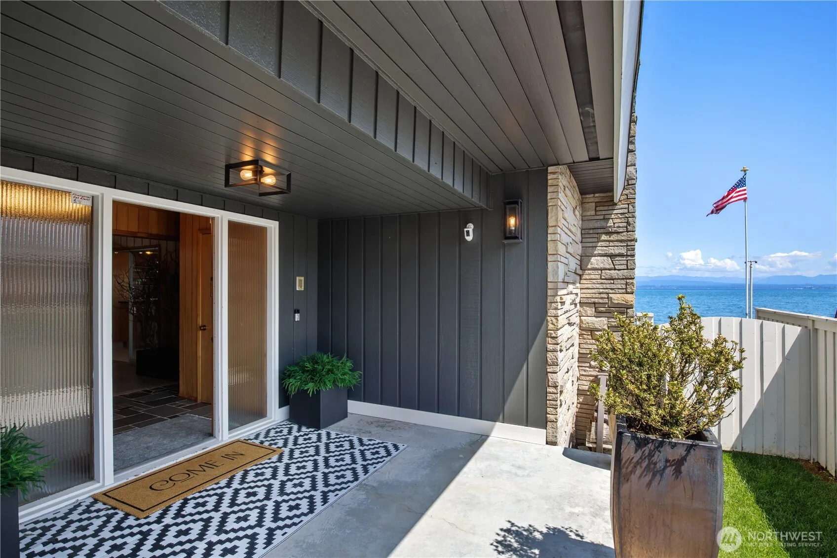 Welcome to the quintessential Camano Island retreat, where iconic 1950s mid-century modern architecture seamlessly meets contemporary coastal living. This no-bank waterfront gem offers breathtaking water, mountain, and sunrise views, along with 81 feet of sandy beachfront just steps from your door. Thoughtfully updated to honor its original character, the home showcases clean lines, warm wood tones, and expansive windows that flood the interior with natural light and frame the ever-changing Puget Sound scenery. Designed for both relaxed everyday living and effortless entertaining, the home features generous gathering spaces, two spacious primary ensuite bedrooms, and an additional guest room to comfortably host friends. Modern upgrades include a beautifully refreshed kitchen and bathrooms with high-end appliances and finishes that perfectly complement the home’s timeless design aesthetic. Step outside to the waterfront patio to relax, and enjoy beachcombing, kayaking, paddleboarding, or simply enjoying the tranquility of the shoreline. Deep-water moorage directly in front of the property offers convenience for boating enthusiasts. Offered fully furnished for true turn-key living, this exceptional property provides a seamless transition into island life. Located on sought-after Camano Island—no ferry required—this is a truly rare opportunity to own a legacy waterfront home that blends architectural charm, modern comfort, and unparalleled coastal lifestyle.