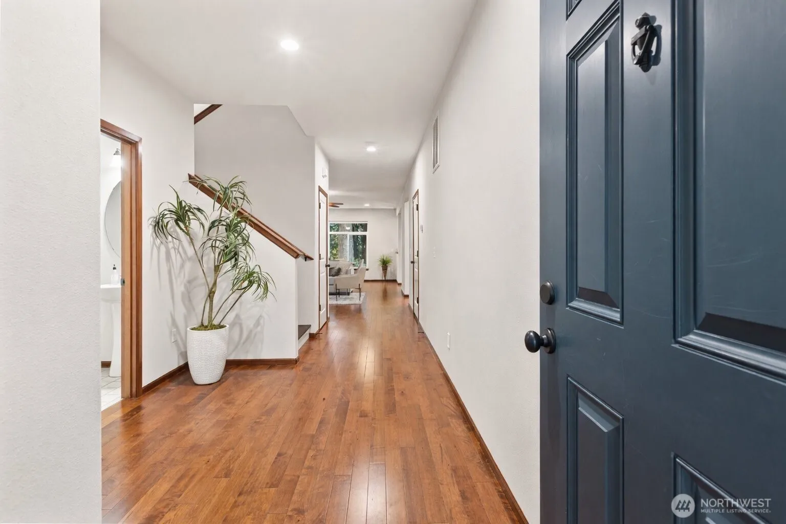Enjoy mountain and valley views from this FRESHLY PAINTED, beautiful 5 bedroom home! Step outside to a large covered patio and gazebo, creating a private outdoor oasis, surrounded by a lush green-belt…ideal for relaxing or entertaining. The expansive kitchen features an eating bar, dining nook, walk-in pantry, granite tile counters, and a striking hammered copper sink – perfect for everyday living and entertaining. The light-filled living room offers a gas fireplace, high ceilings, and an abundance of windows, with an adjoining formal dining area for special gatherings. Hardwood floors span the main level, complemented by double doors leading to a private office. The oversized primary suite provides a peaceful retreat with a double vanity, soaking tub, separate shower, and a spacious walk-in closet. The upper level also includes durable vinyl plank flooring, a full bath with double vanity, huge laundry room, a little flex space and ample storage. Additional highlights include air conditioning (heat pump), newer exterior paint, garden shed and featuring a maintenance free lawn with Dream Turf. In a prime location near parks, shopping, dining, and entertainment, as well as the Highly rated Glacier Peak High School. The two car garage (w/additional 4 uncovered parking spots), also has a a huge space for a shop area or extra storage. This exceptional home offers comfort, style and tons of privacy… welcome home!