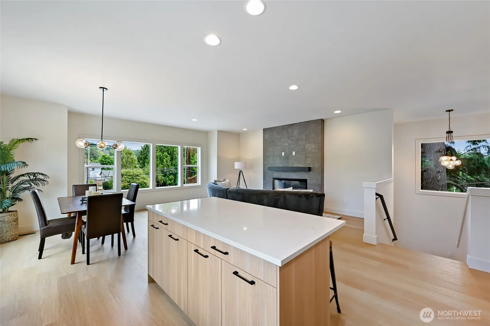 Niche location – & room to spread out. Wood type floors at entry & continue thru formal areas. Upstairs theres a jumbo Greatroom w/sizeable eating area. Extra large quartz kitchen; vast eat-in island. Modern tile work, SS appliances, miles of counter space & contemporary cabinets. Upstairs continues w/3 big bedrms & primary w/5pc bath; vast closet. Laundry room. Classy layout. Step downstairs for 2 more bdrms & second area to cook; hang-out;entertain; private entrance. There’s a big bath/laundry too. Minutes to amenities, lite rail & arterials. Gigantic fully fenced yard; mature fruit tree. Plant a garden, play ball or lounge. Check City ADU/DADU codes, cuz there’s tons of space for such.