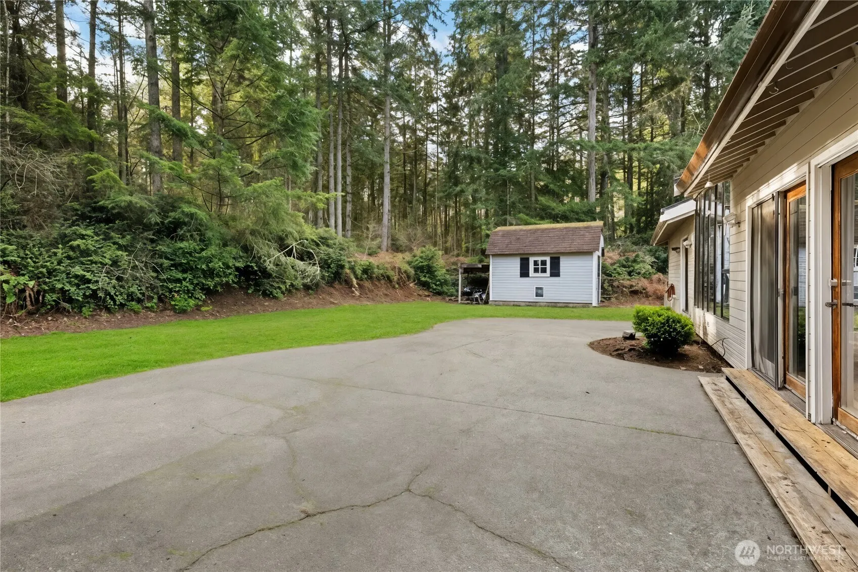 Tucked at the top of a quiet cul-de-sac and surrounded by a greenbelt, woods and lush greenery, this ONE-level home offers exceptional privacy on 1.2 acres in a quiet, coveted neighborhood. Architecturally rustic with a warm, chalet inspired vibe, the home features vaulted tongue-and-groove wood ceilings in the great room and den. A freestanding wood stove anchors the great room, adding warmth and character. The expansive kitchen is ideal for entertaining with abundant cabinetry, a large island with cooktop, double wall ovens and a convenient pass-through to the great room for entertaining. The primary suite, also with vaulted ceiling and exposed beams includes a walk-in closet & private ensuite bath. Two additional spacious bedrooms share a spacious full bathroom. The large backyard patio is perfect for enjoying the serene setting with unlimited potential for outdoor relaxing and gardening enthusiasts. A utility/laundry room leads to the 2 car garage. Plus plenty of additional parking for RV or boats. NO HOA. Exceptionally located for commuting, just minutes to I-5 and Uptown Gig Harbor, this home seamlessly blends privacy, comfort & convenience.