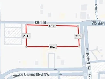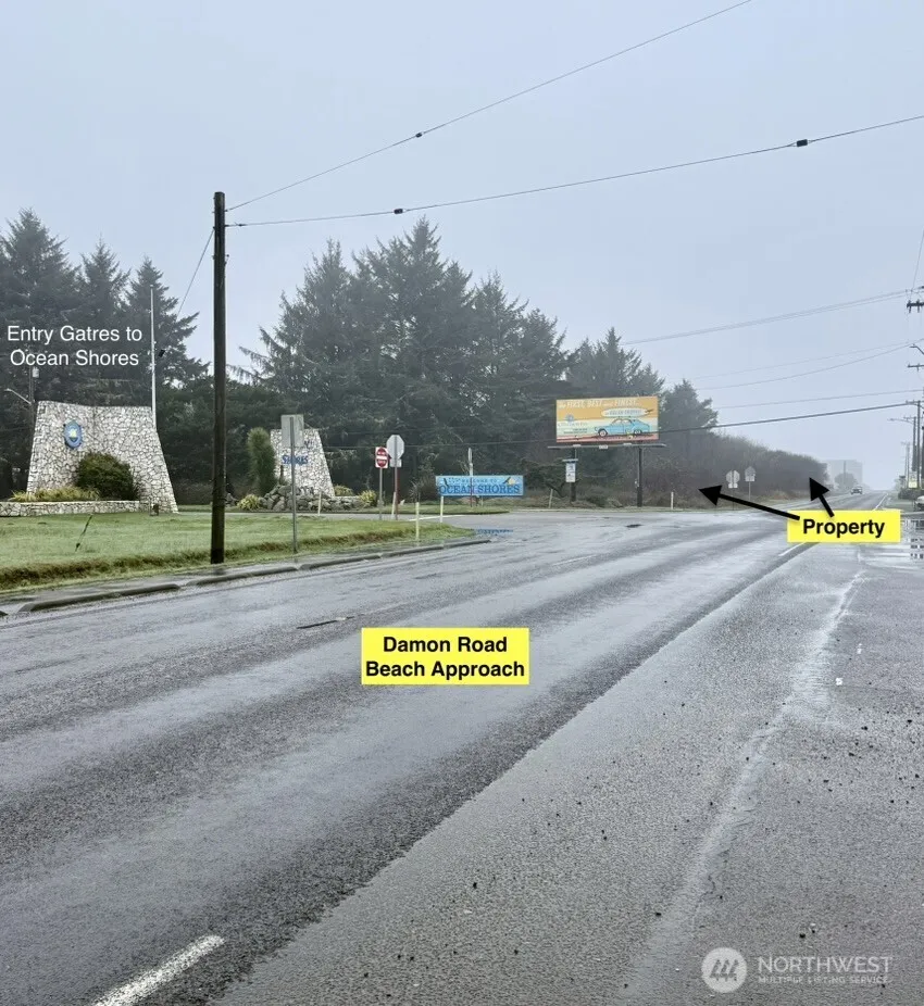 Large vacant commercial parcel located adjacent to the entry gates to Ocean Shores and running on the south side of Damon Road to the WA State Parks Restroom facilities. Property has great exposure from Pt. Brown Ave. when you turn into Ocean Shores and features 544 feet along Damon Road heading to the beach approach. Seller will provide wetland delineation when completed. Zoned B1 Commercial which allows for multiple uses including retail, restaurant, hospitality and multi-family. Think retail along a beach approach road… kite shop, mopeds, hot dog stand, beach play things. Take a look and then let’s talk.